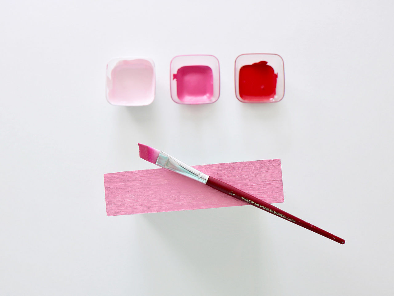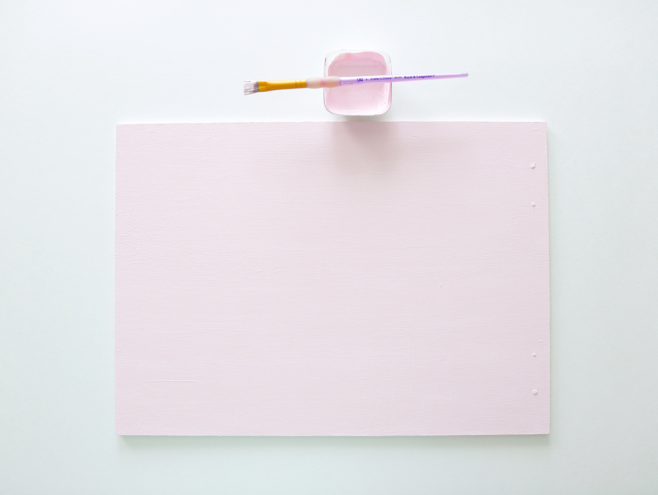 The second sign will be created using two DIY Slat Signs. Start by coating the two signs in the same light pink paint used for painting the first sign.