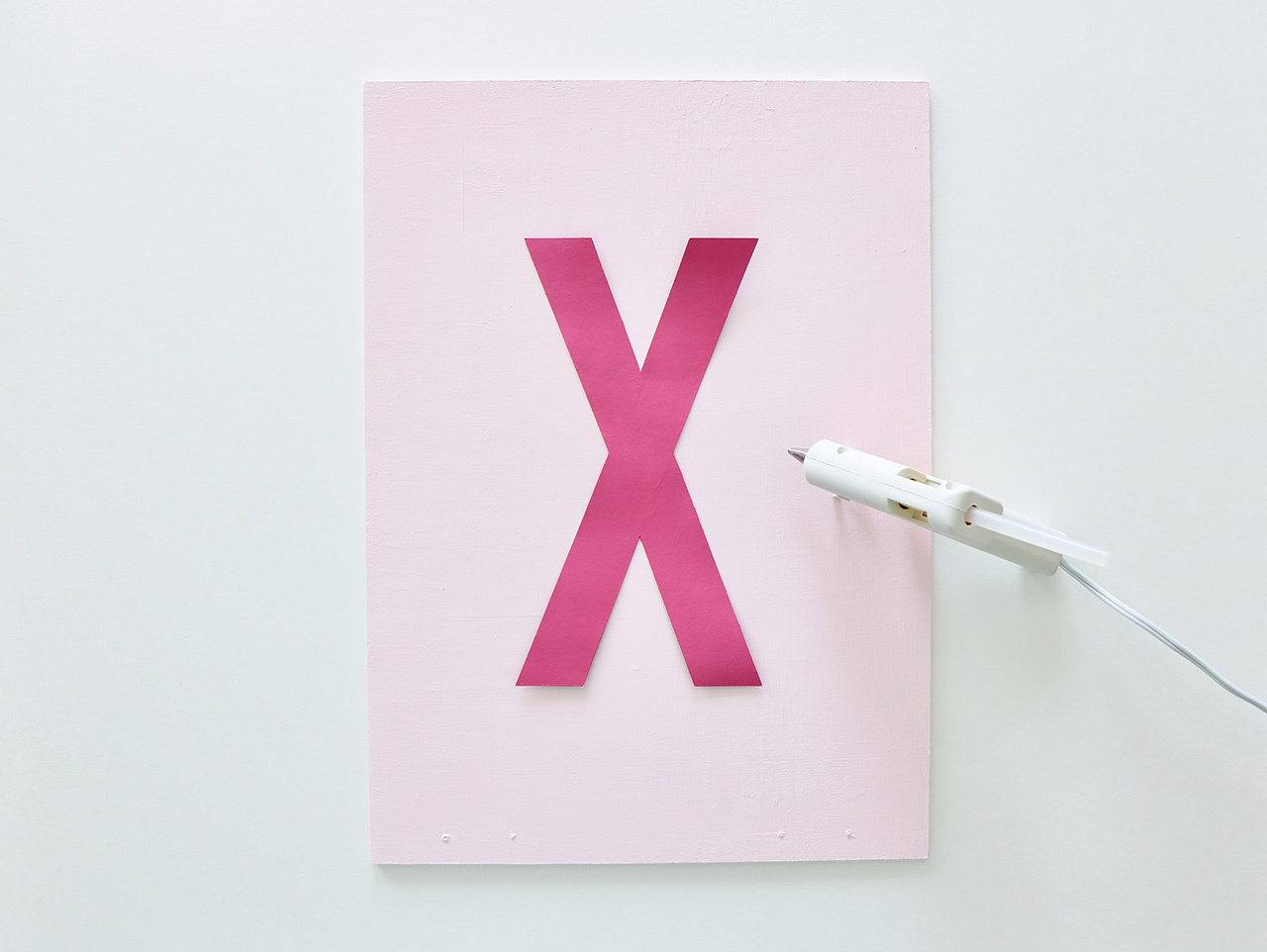 Now detach the letters X and O from the backing from the Jumbo Bulletin Board Letters pack. Paint both letters with dark pink paint.