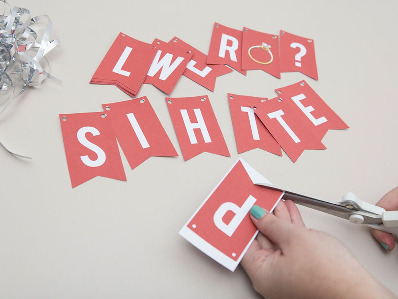 Trim the ends to mirror the ribbon cut of the bottom of each letter.