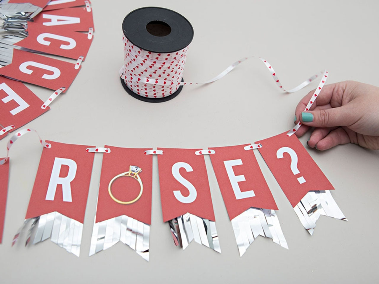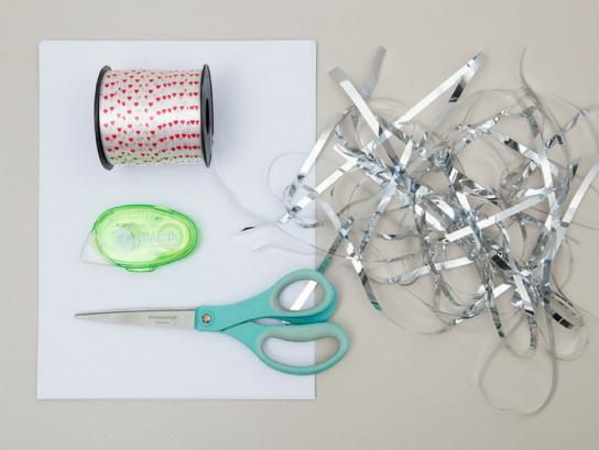 String onto the cute heart curling ribbon and hang!