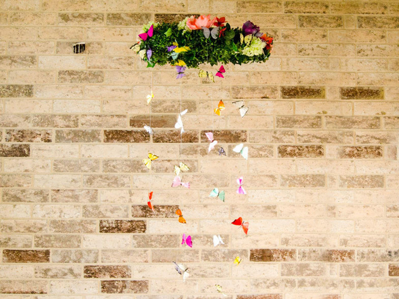 Tie five or six Feather Butterflies down the strands of fishing lines, alternating the colors.