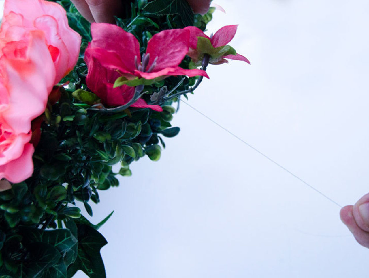 Wrap the Ivy Garland around the Wreath Frame and fill in any gaps. Secure with fishing line or floral wire.