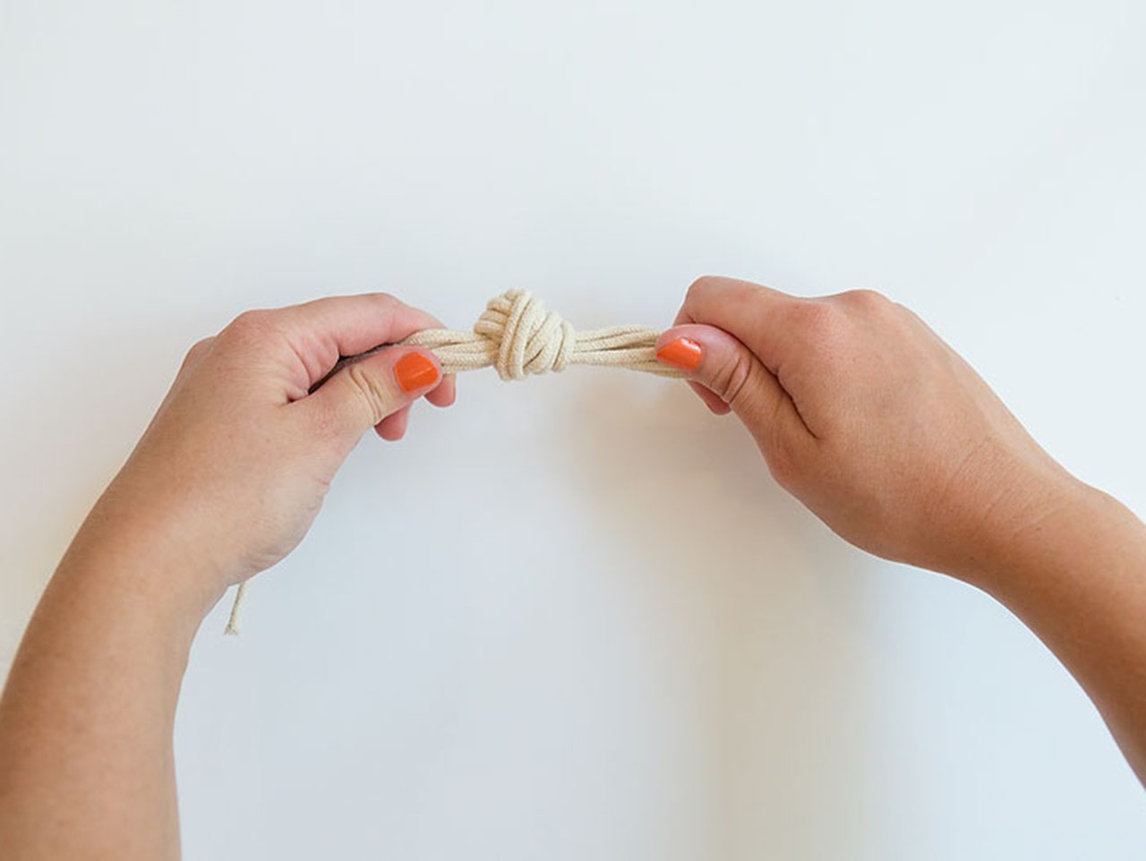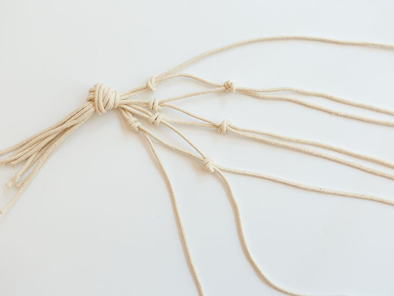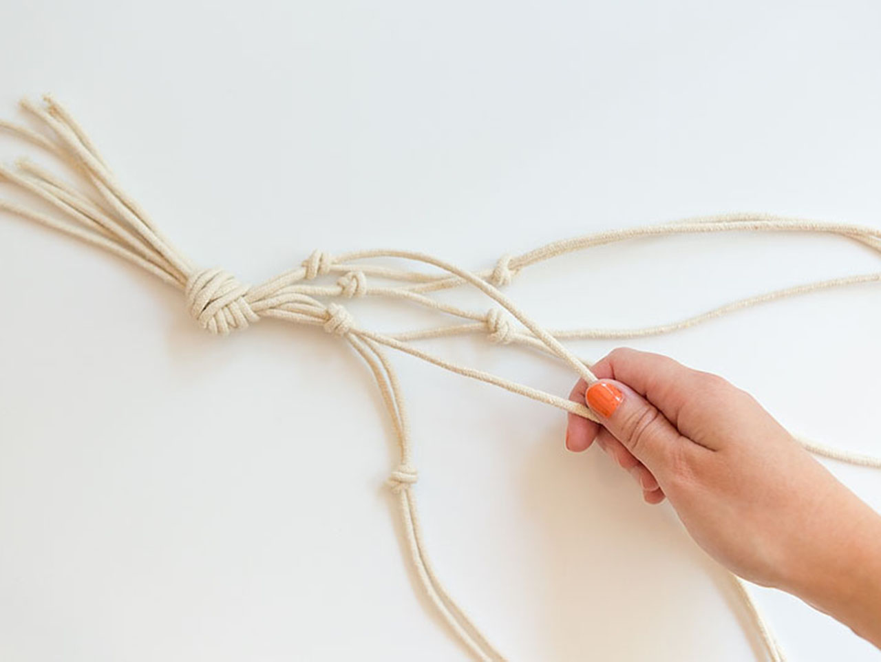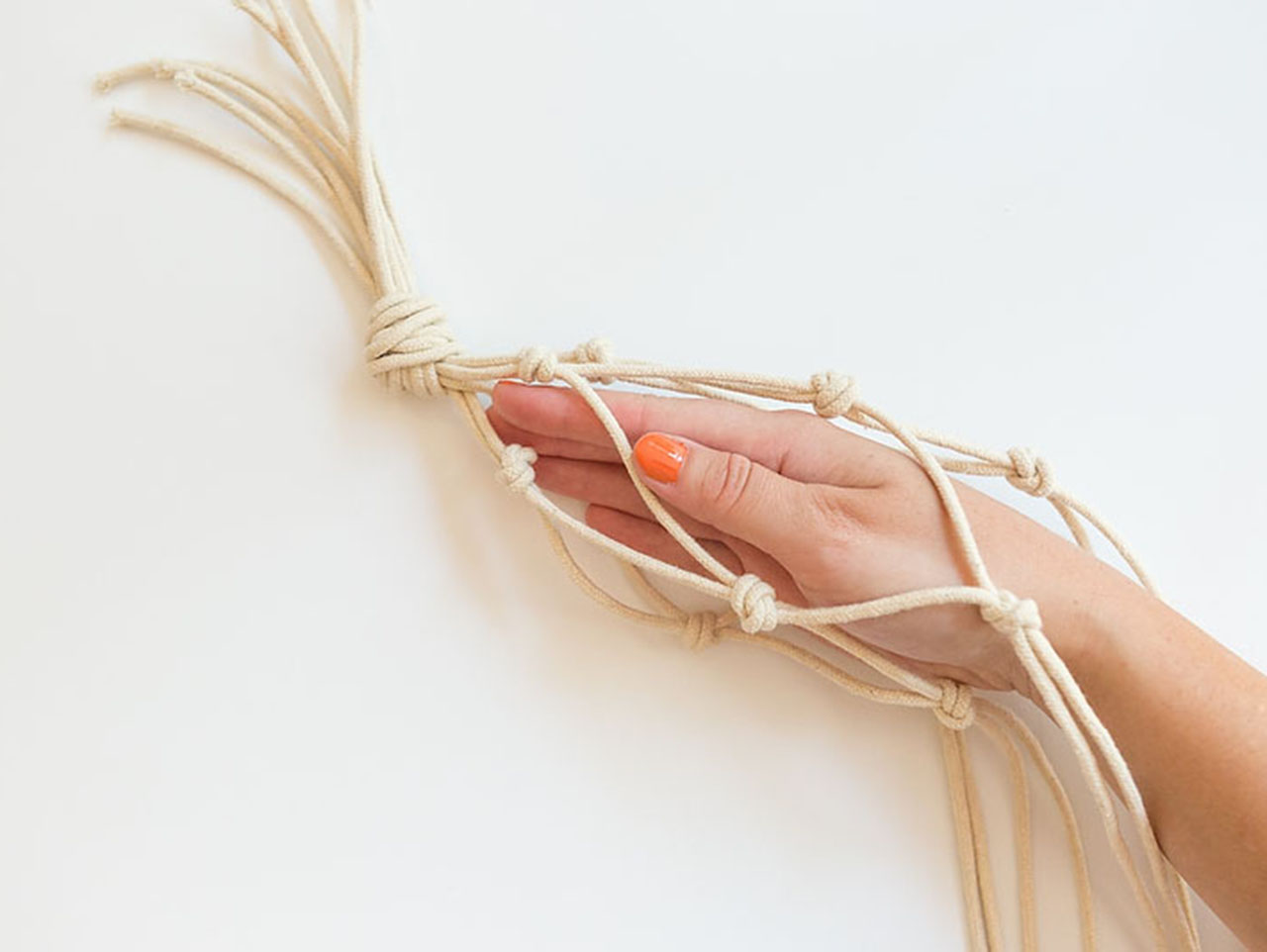 Repeat steps 3-4 until your macrame resembles netting. If you ever lose your spot or get confused, insert your hand into the center of your macrame to re-arrange the cording.