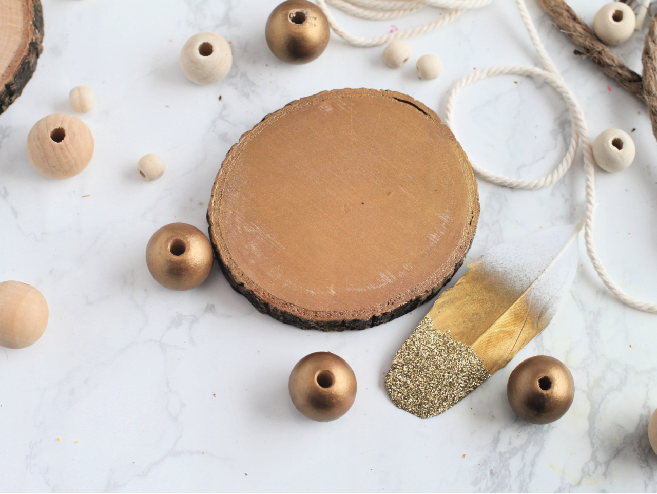 Paint the bottom of the unfinished wood slice with the gold paint.