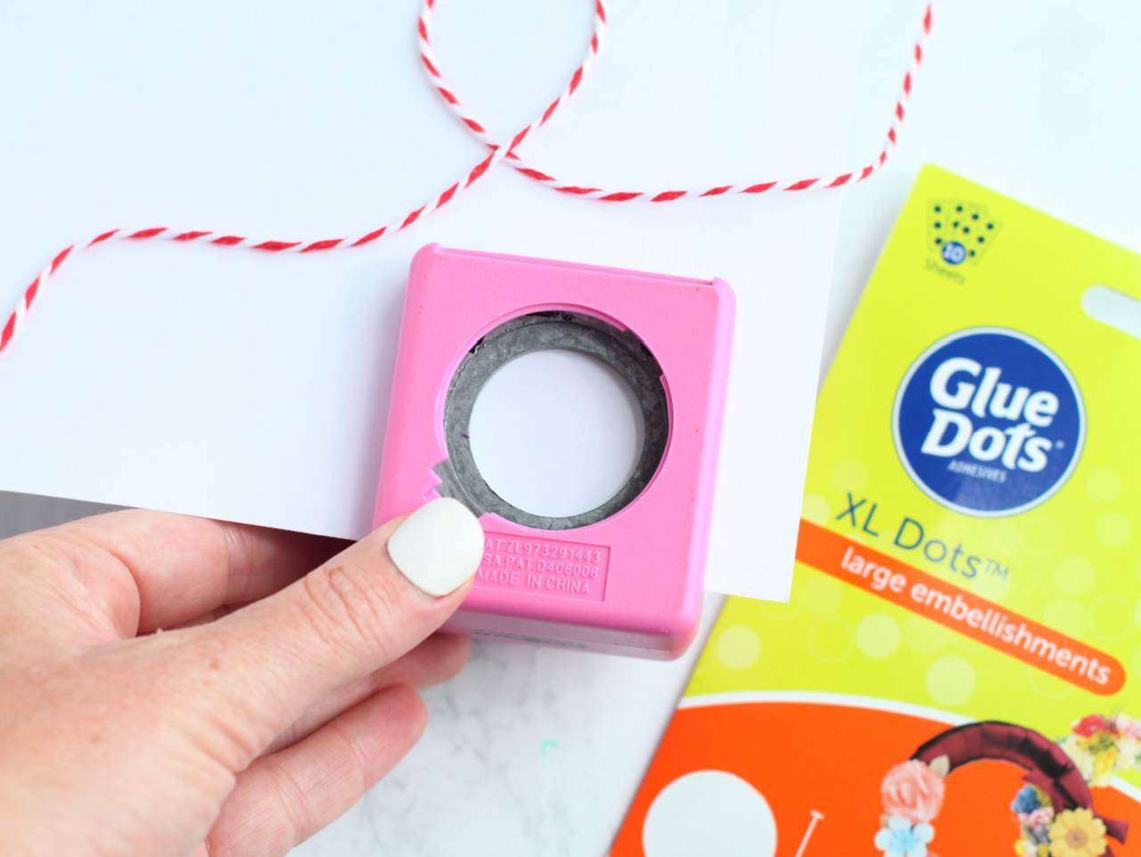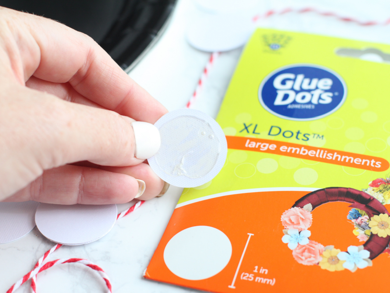 Place a 1/2" GlueDots Clear Adhesive Dot on the back of each white circle.