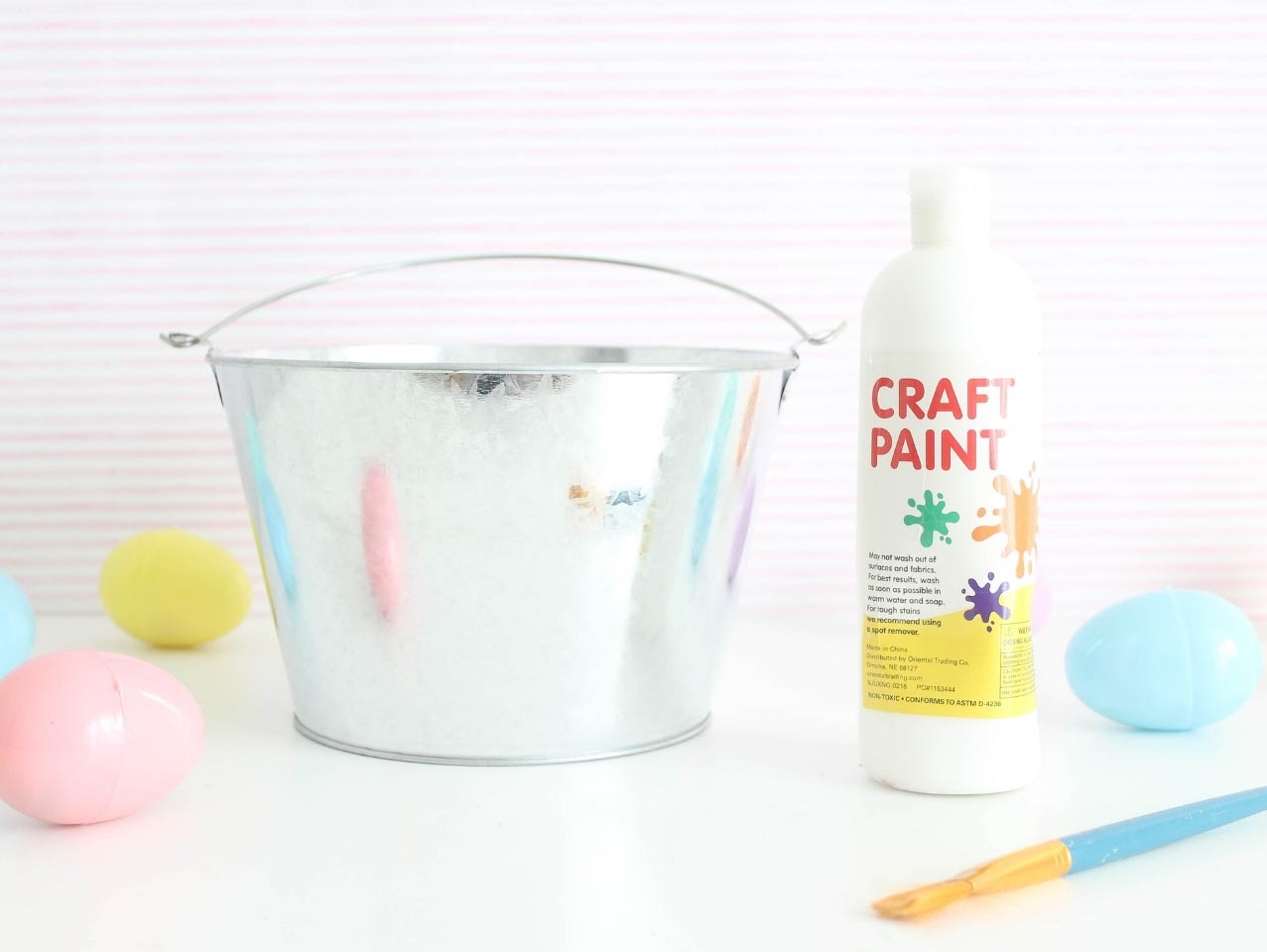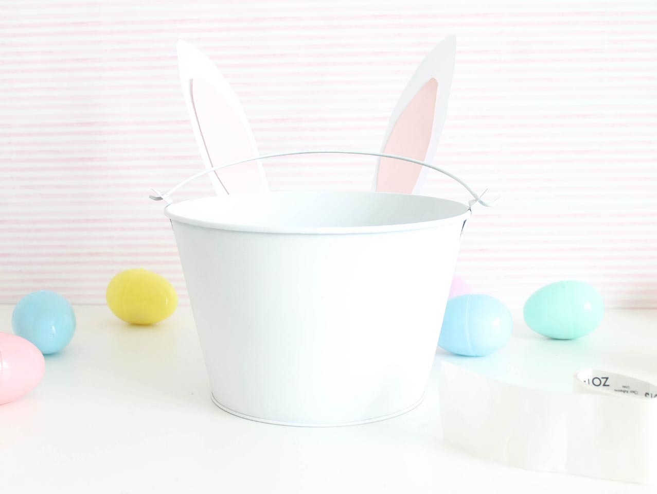 Fill the pail with Pink Easter Grass.