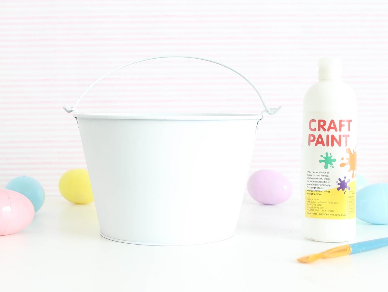 Begin by adding a 2 coats of White Acrylic Paint to the Large Galvanized Pail. Allow to dry.