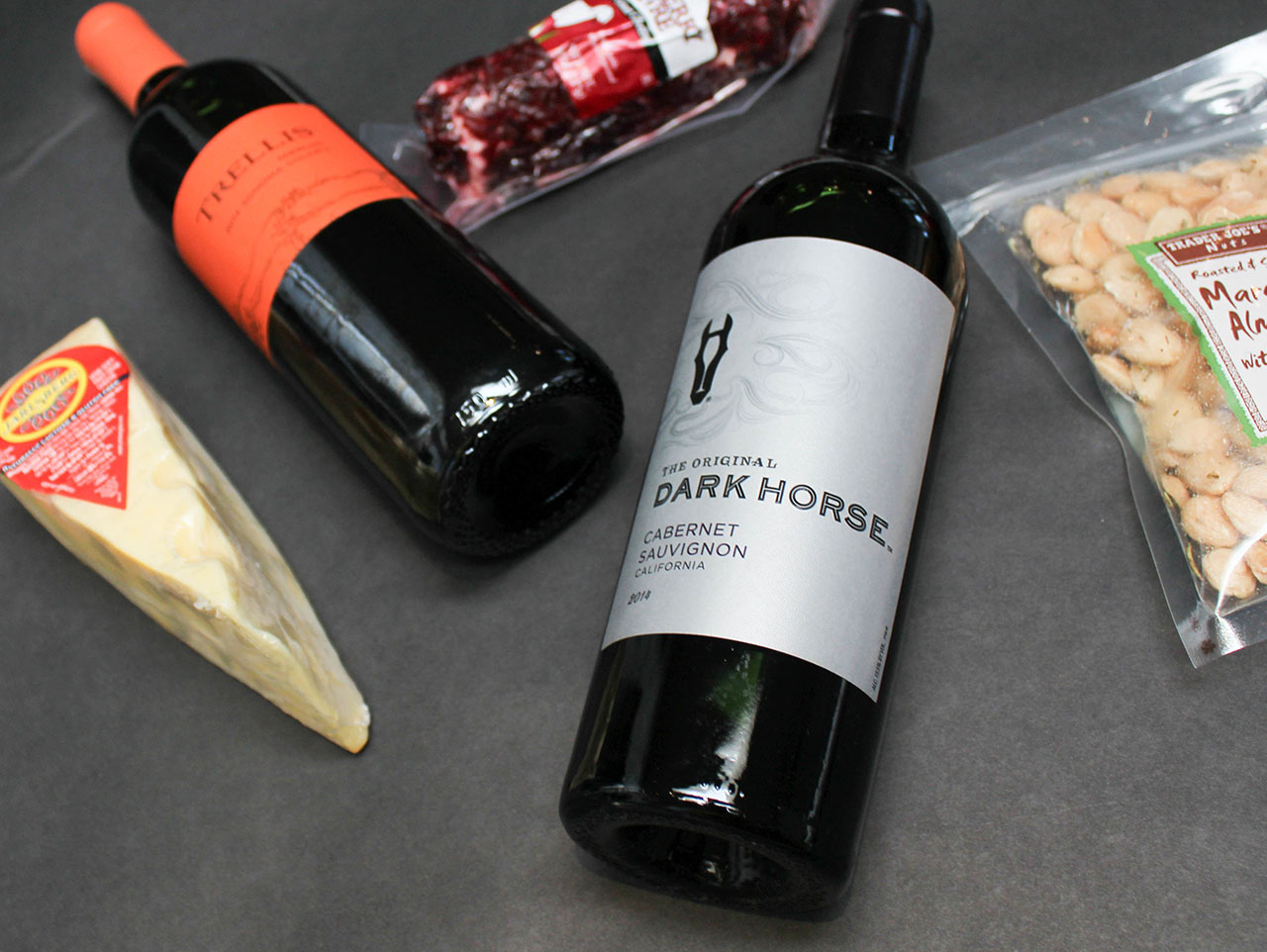 Plan the arrangement of your pairing suggestions, we like to put our wines at the top, or back, and the cheeses in the front, so that they aren’t blocked by the height of the wine bottles. You can also add in enhancements like fruits, nuts, chocolates, and cured meats, for a more robust display.