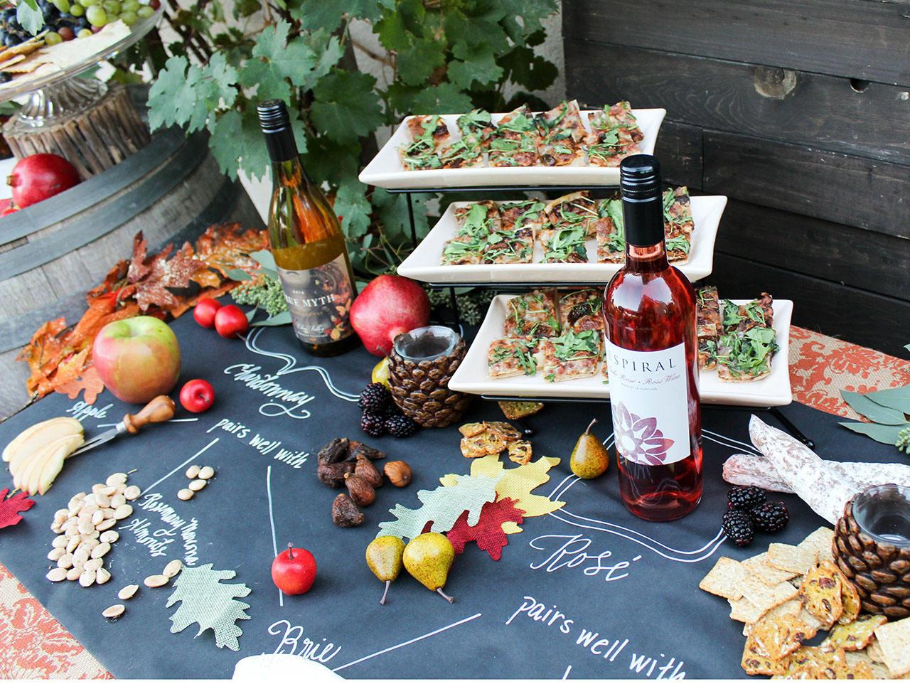 Lay your table runner out on your presentation table, and place your wine and food pairings as written.