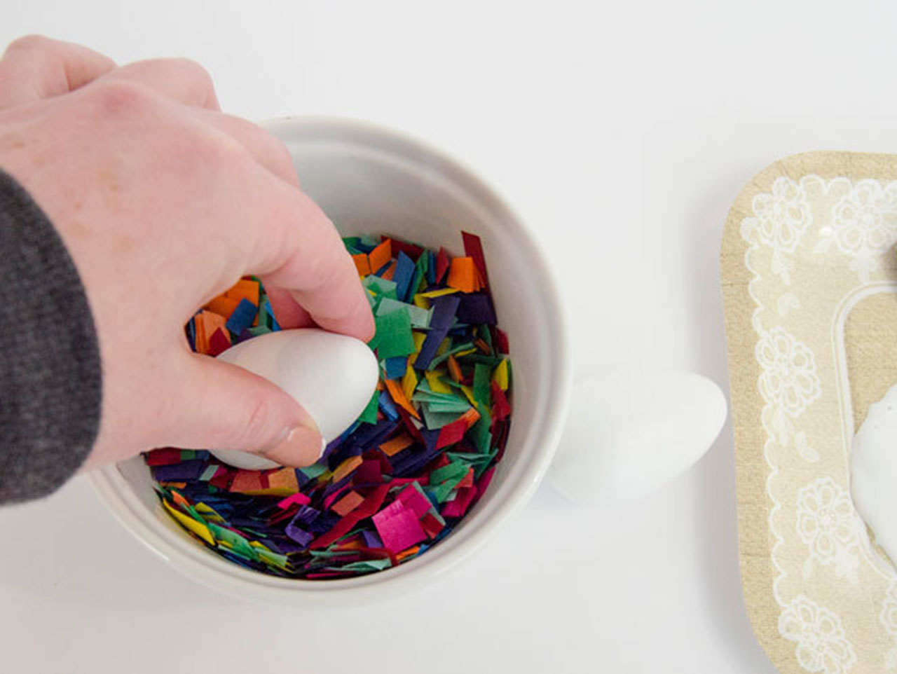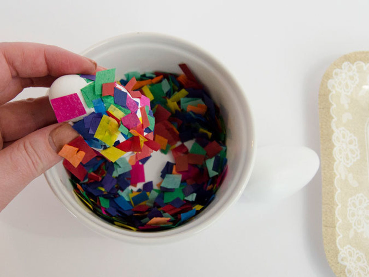 Once the first layer of Mod Podge® is dry, cover the confetti egg with another layer of Mod Podge® and then let dry.