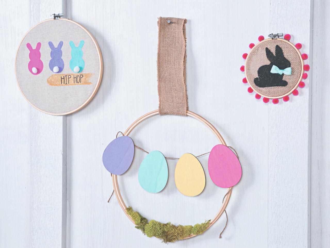 Group all three hoops together to create a fun mini gallery wall or pick one to make and nestle it amongst your Easter décor. Either way, your Easter décor will be hoppin’ once you add these to the mix!