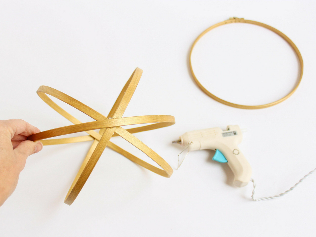 Overlap three of the rings at the same point so that they form an orb. You can use a small dab of hot glue to secure the rings in place at the point where they meet.
