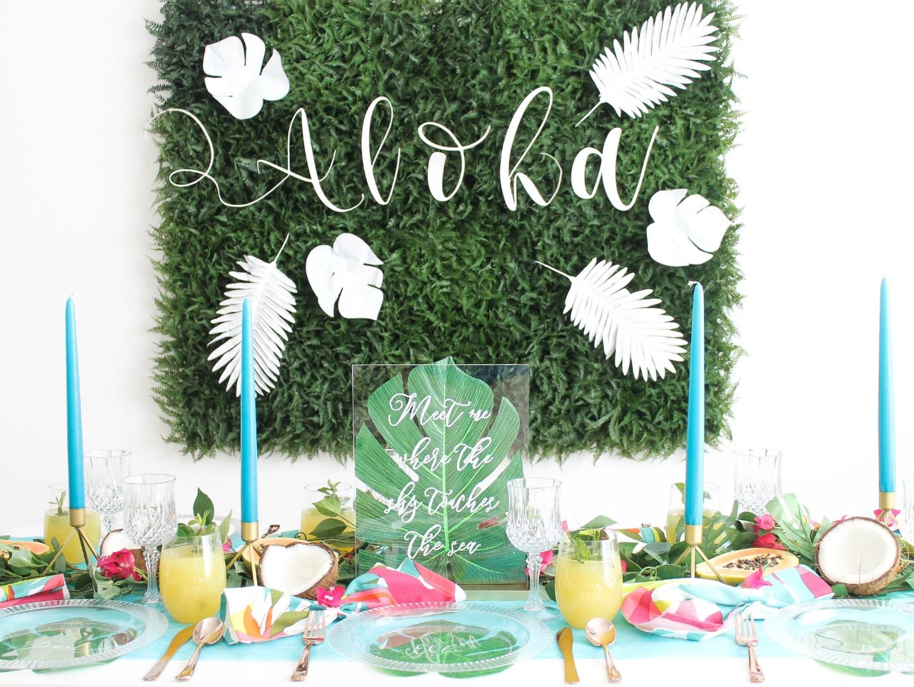 Don't miss out on the tutorial for a Monstera Leaf Acrylic Wedding Sign and the recipe for delicious Pineapple Coconut Mojitos.