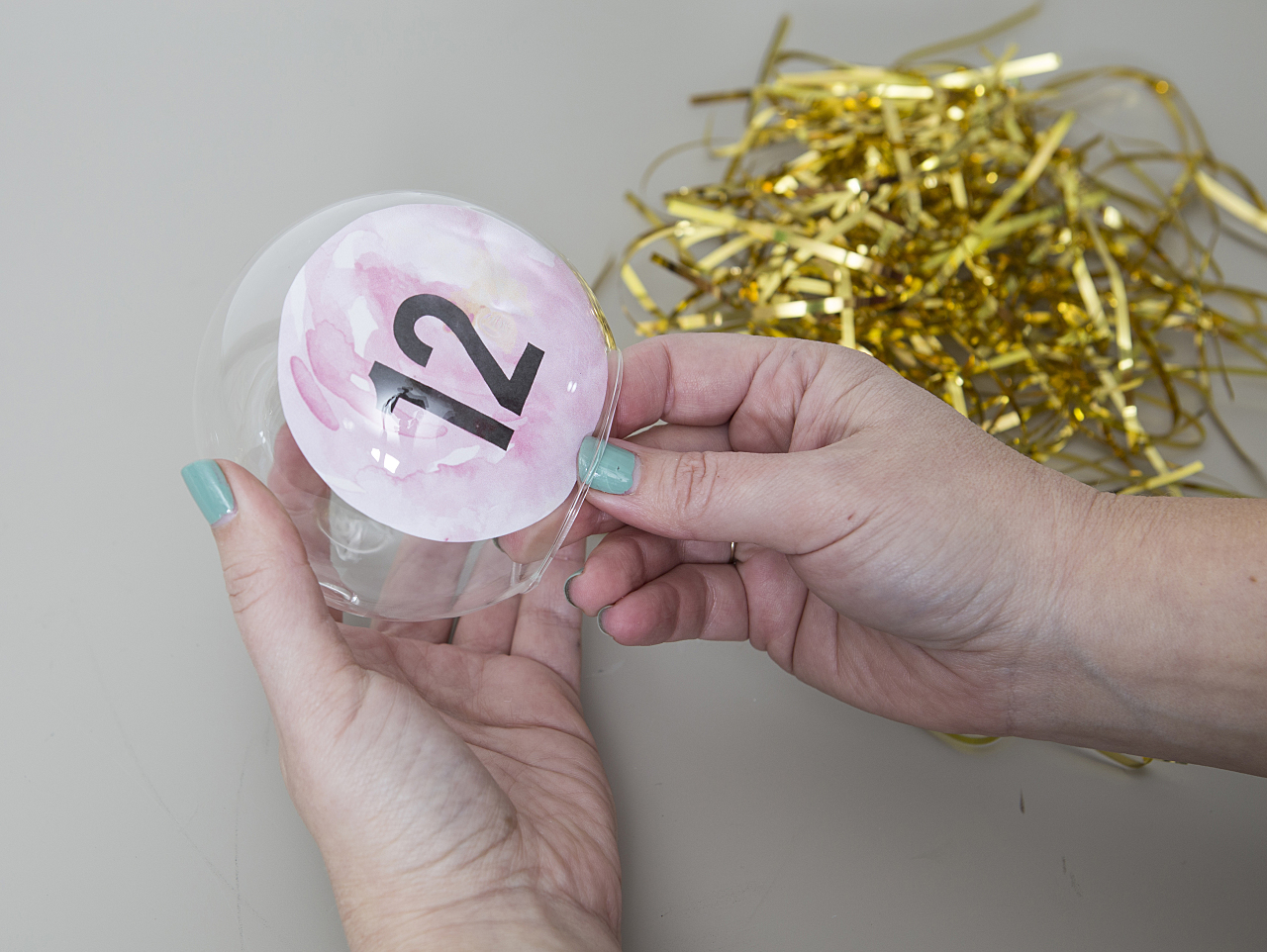 Fold the table number a bit to get it inside the glass globe and adjust it to face forward with the hanging part of the globe directly behind it.