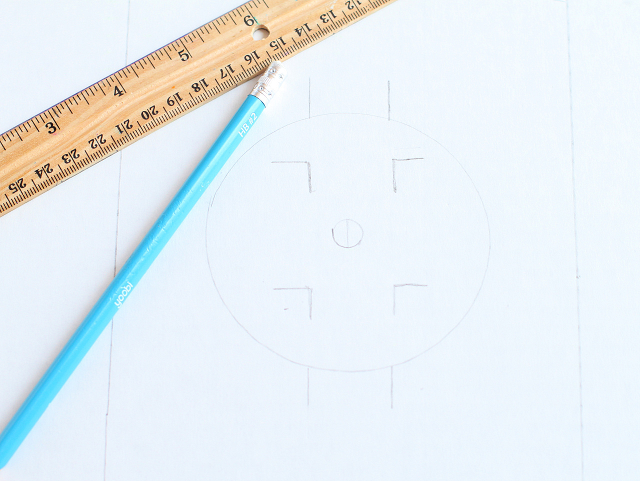 Cut a piece of the DIY Photo Booth Backdrop Board to fit above your dessert table. Use a ruler and pencil to create a 24 x 36 rectangle on the board.