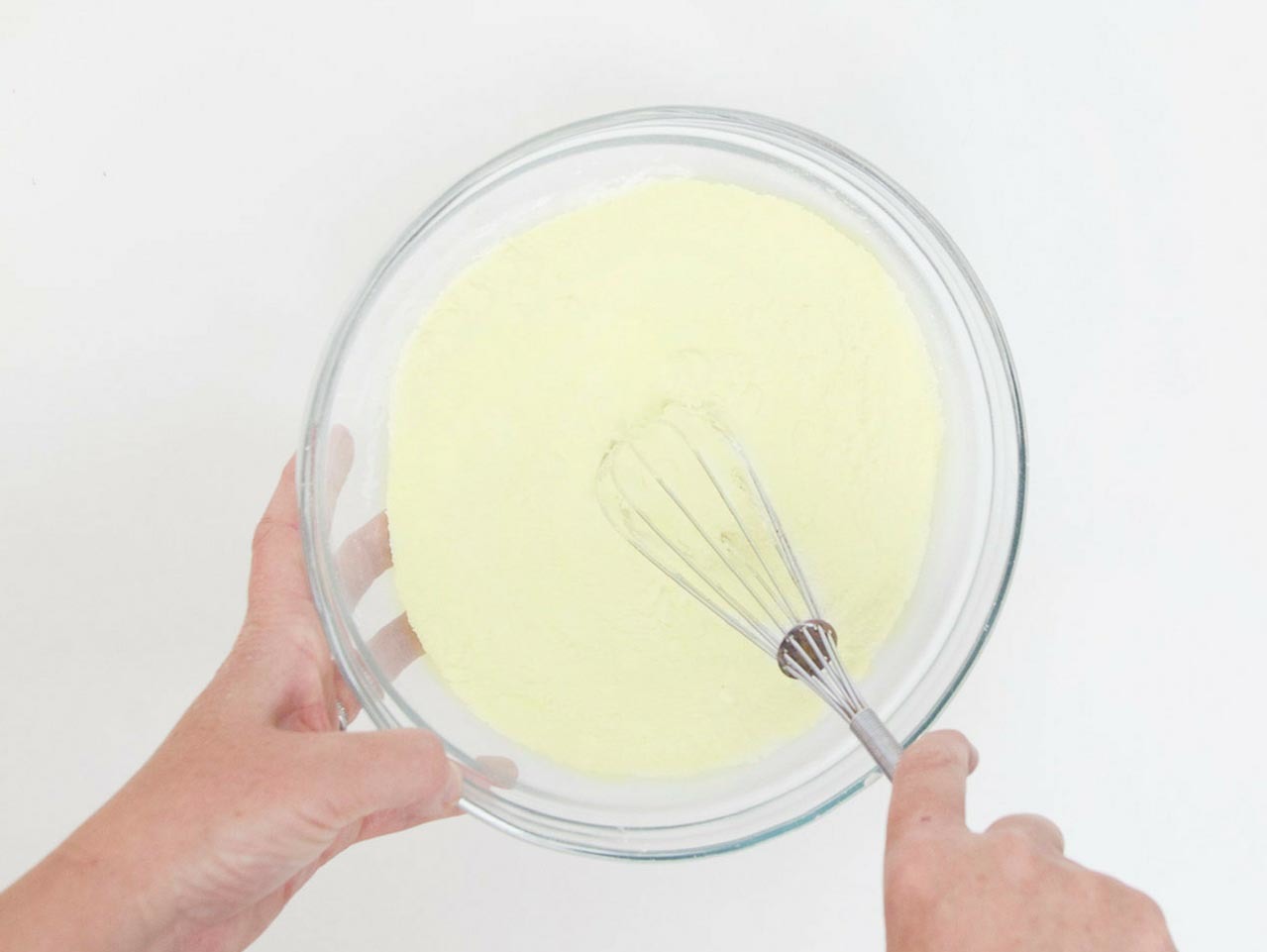 Use a whisk to mix the dry ingredients. Remove the lumps in the mixture to prevent warts (bubbles and lumps) from occurring in the finished bath bombs.