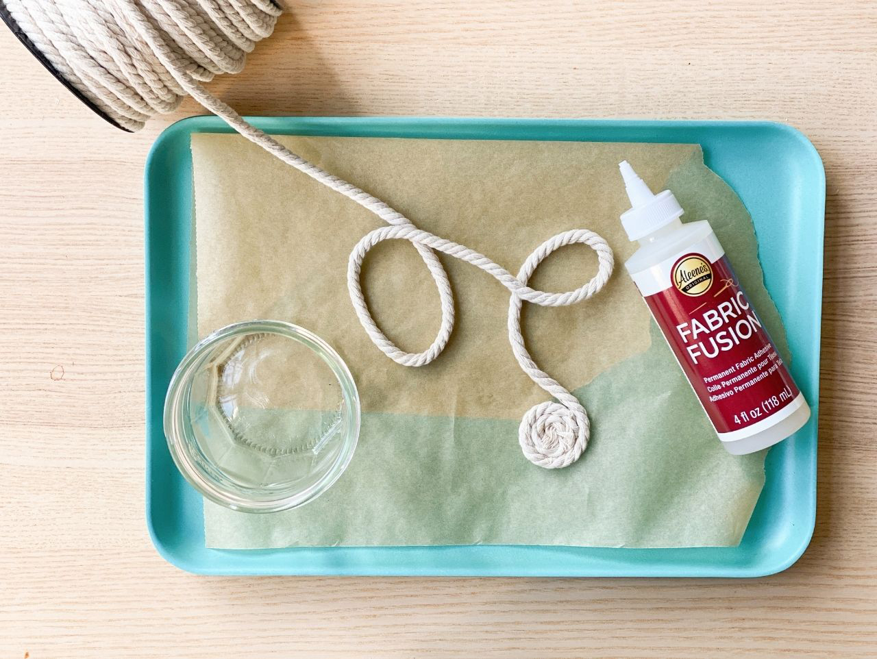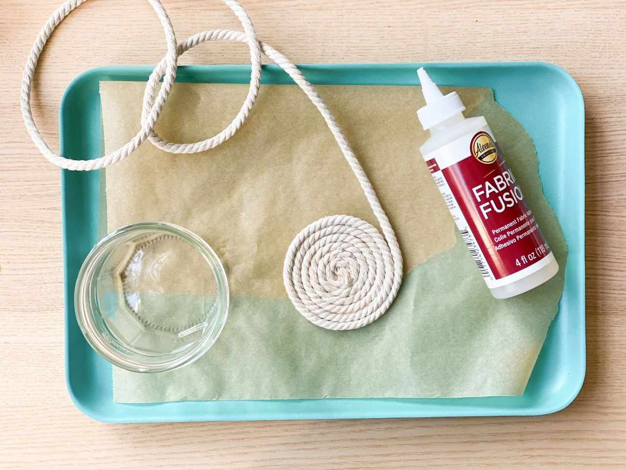 Cover a plate or tray with parchment or wax paper. Begin coiling the cotton rope, gluing together as you go.