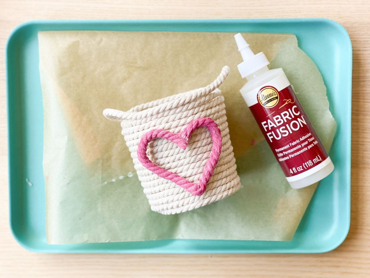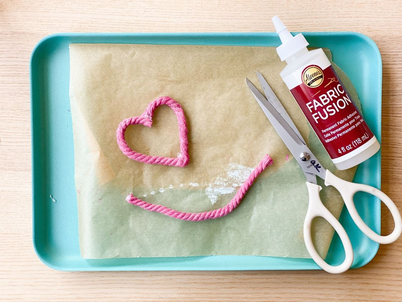Once the painted rope is dry, shape it into a heart and glue the ends together.