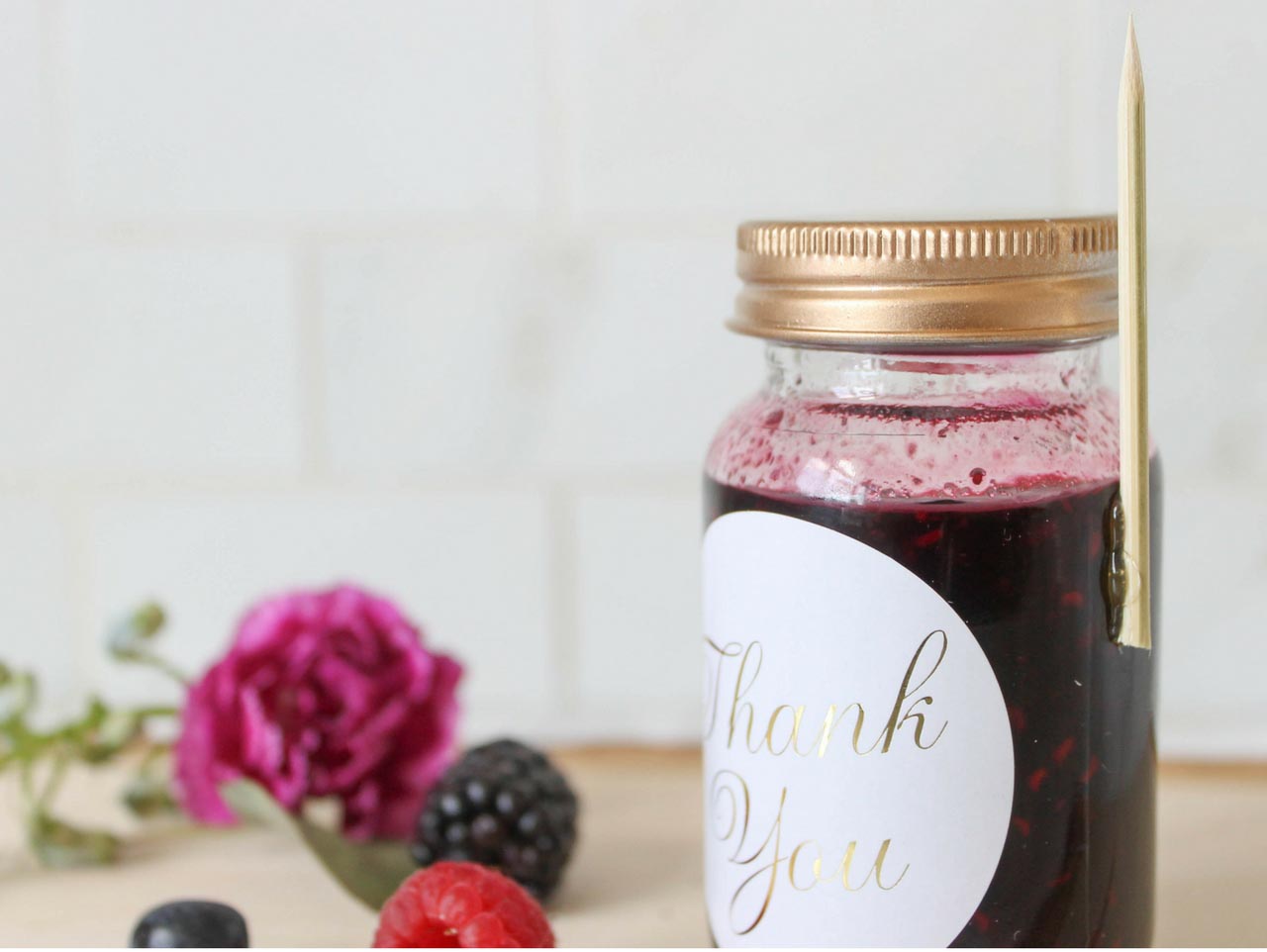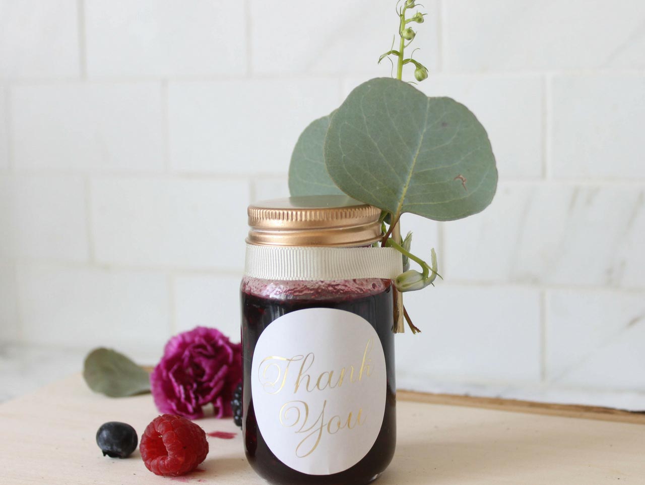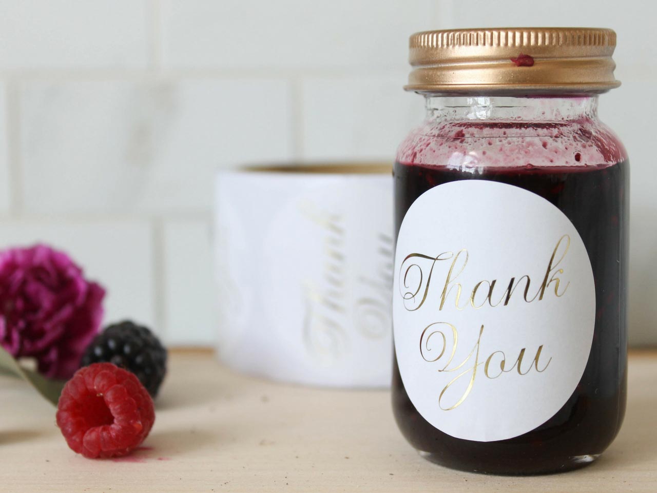 Add Metallic Gold Foil Thank You Sticker to the front of each jar.