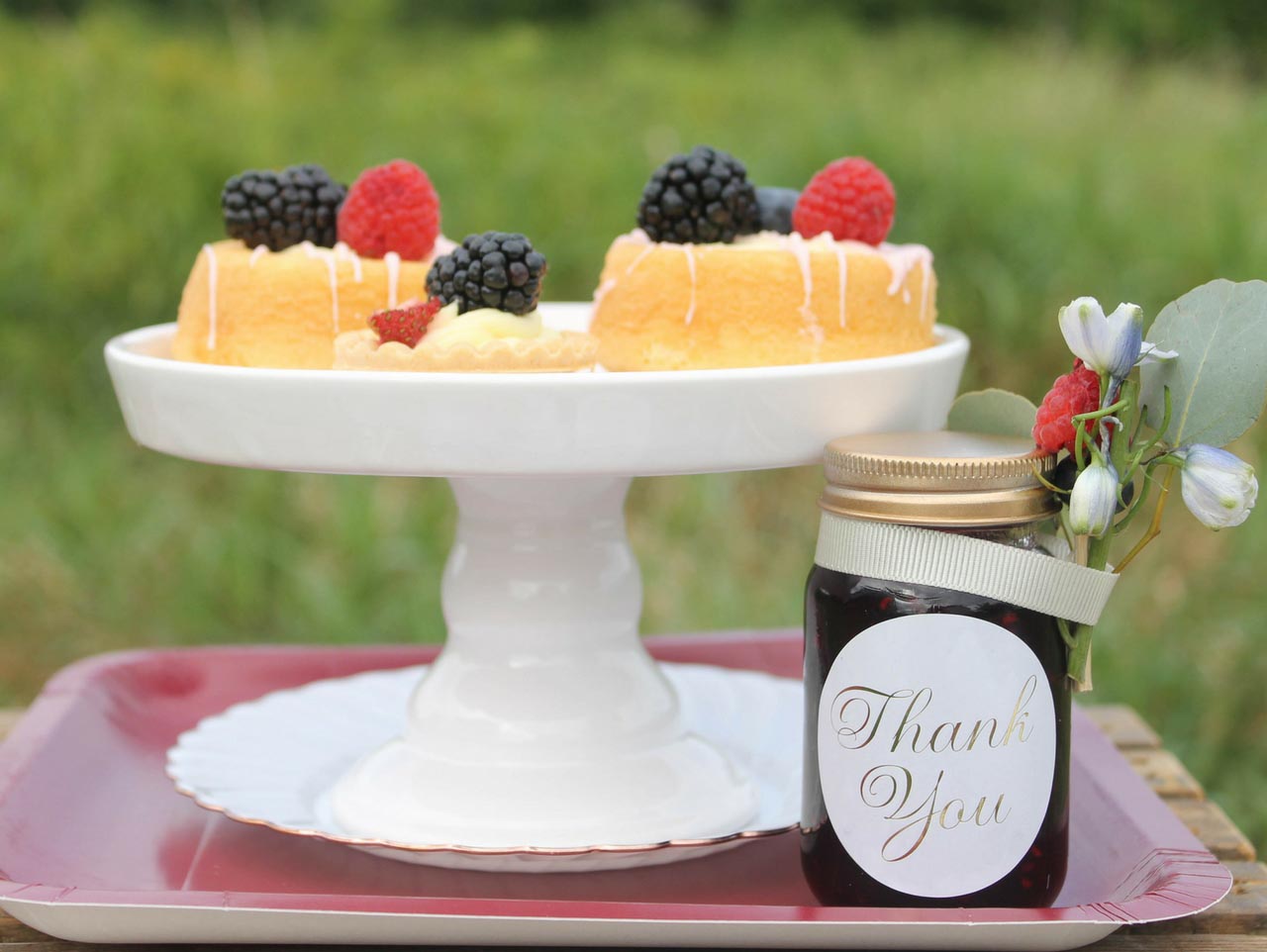 Skewer a few fresh berries on to the wooden toothpick. Your berry jam favor jar is now complete!