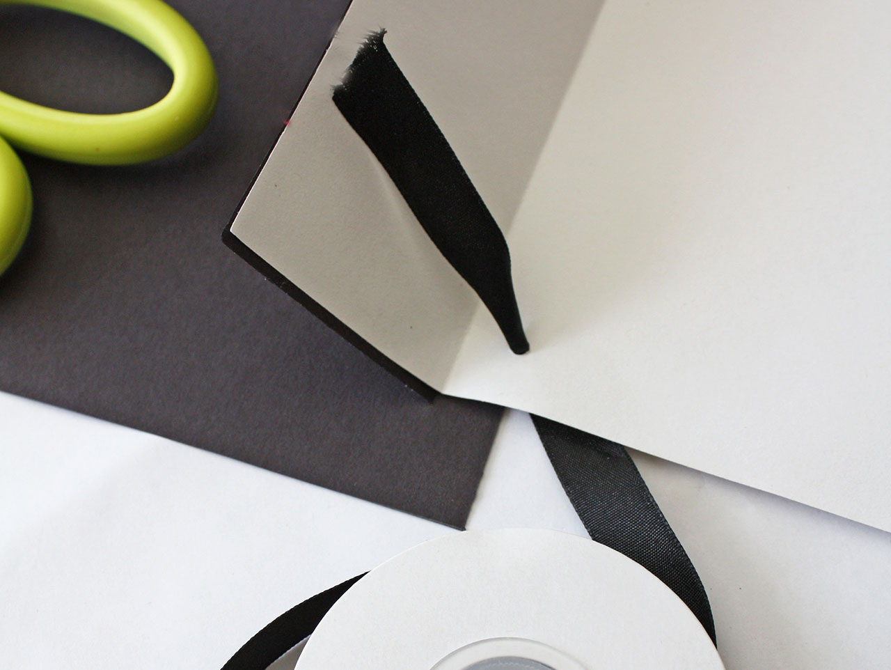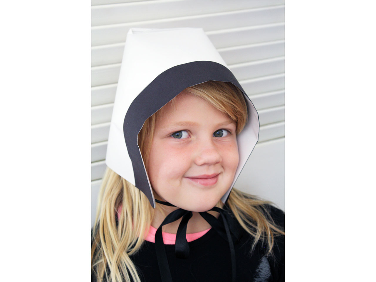 Cut two pieces of black ribbon and tie them onto each side of the bonnet.