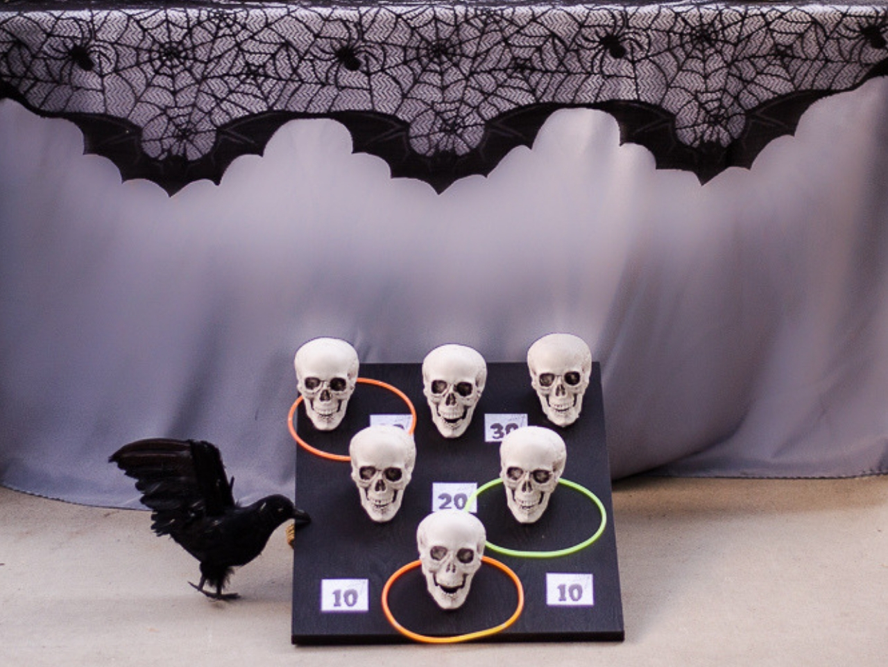 Download the Free DIY Skull Ring Toss Game Points Printable here and print onto white cardstock and cut out using a paper trimmer or scissors. Attach the printable points to the board using glue dots.