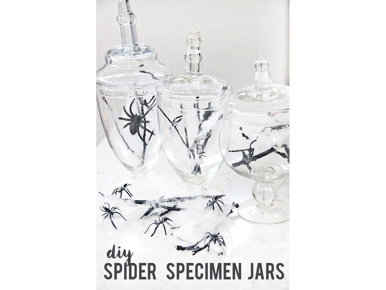 Such a fun and easy DIY decor idea for Halloween! It only takes a few steps and a few supplies. I love these glass apothecary jars, and can’t wait to change out the decor using these jars for different holidays!