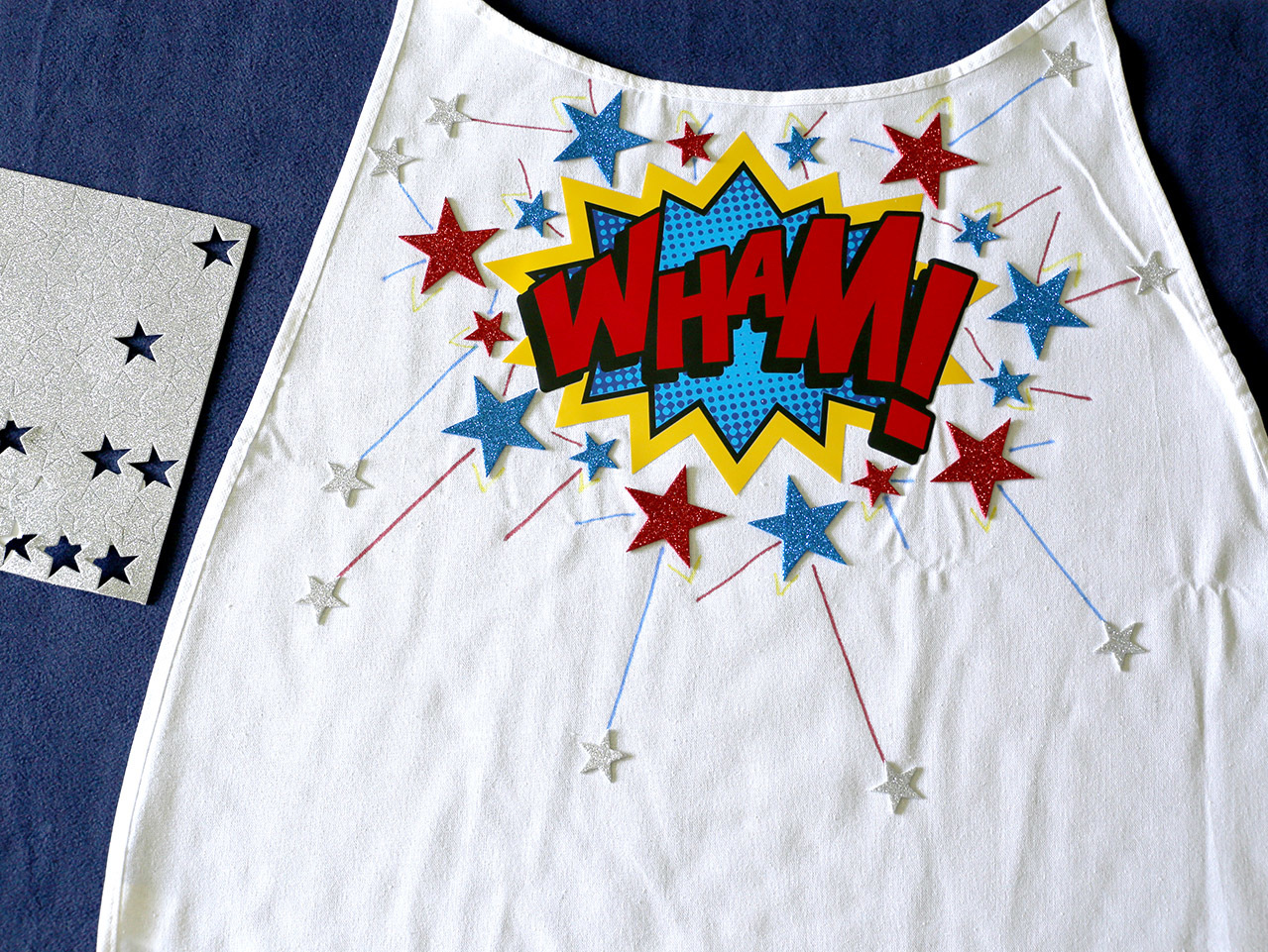 Remove the decal from the backing, place it in the center of the cape and press firmly and smooth down to adhere it to the cape.