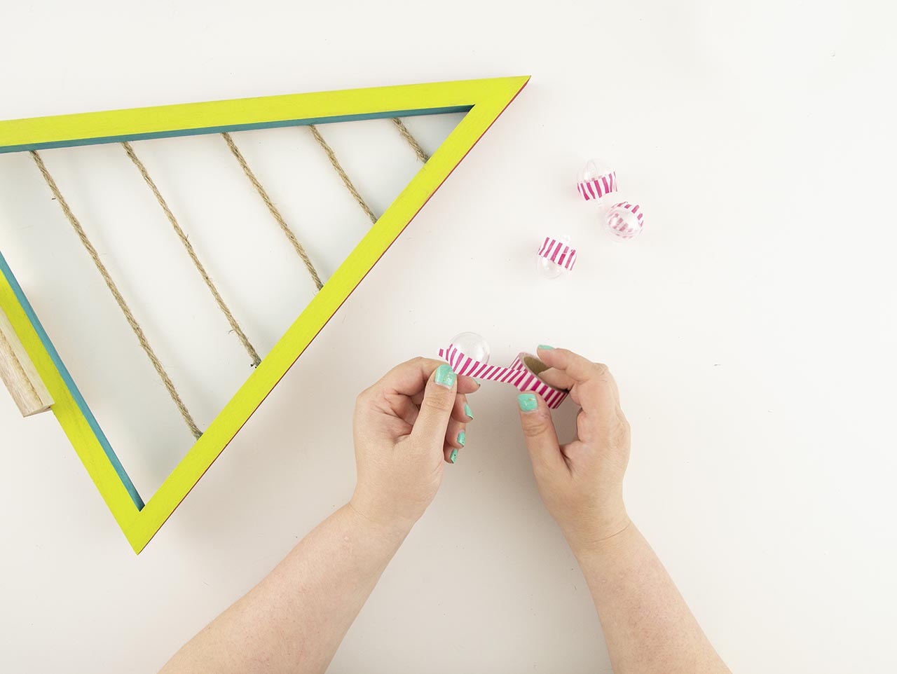 While the paint is drying, use Washi Tape to mask off the top half of 12 DIY Mini Clear Ornaments.