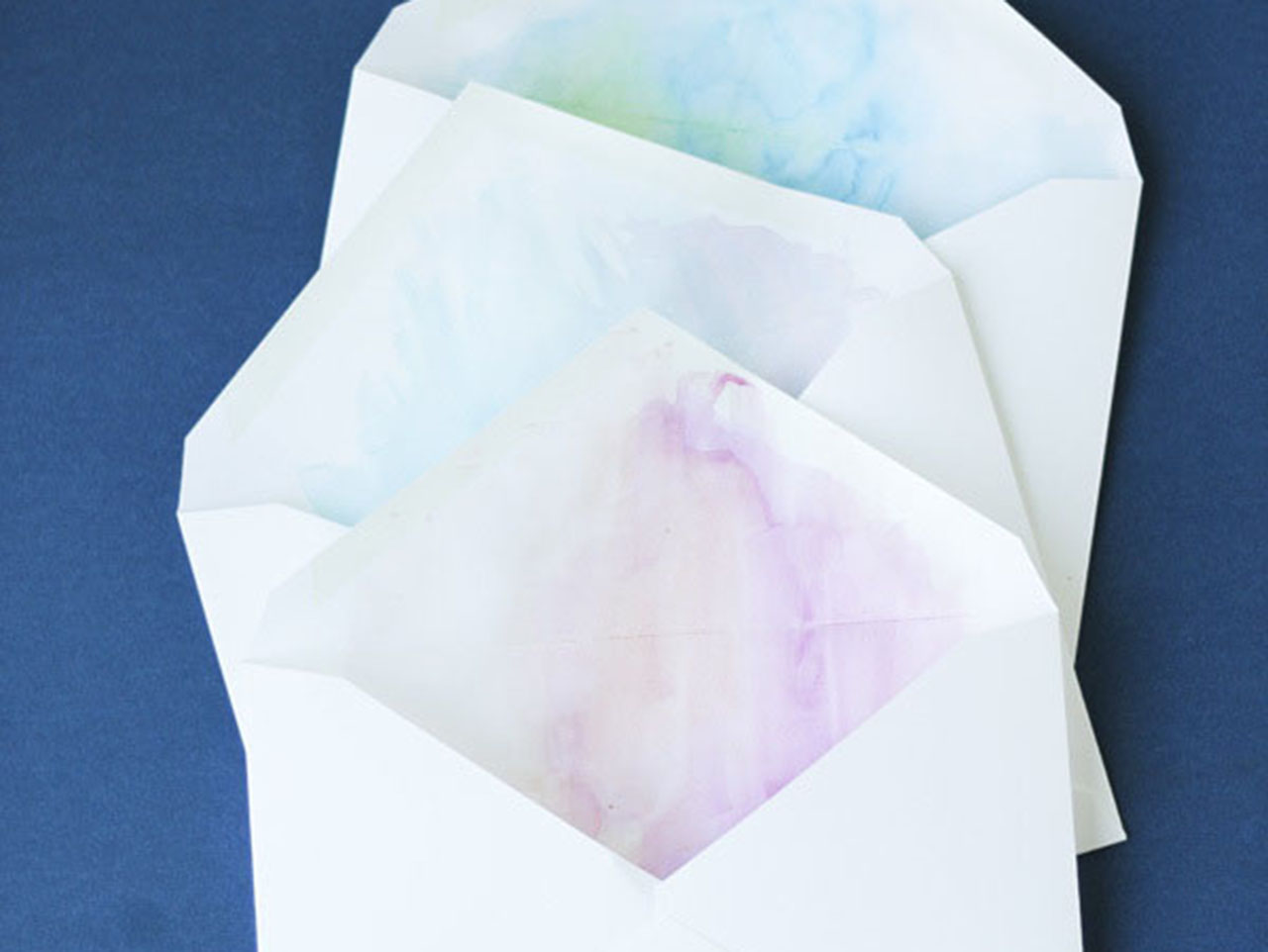 Repeat until you have all of your envelopes customized with their own unique watercolor liner. It makes the perfect liner for a black and white invitation and adds even more fun to a colorful invitation. You just can’t go wrong with such a pretty envelope!