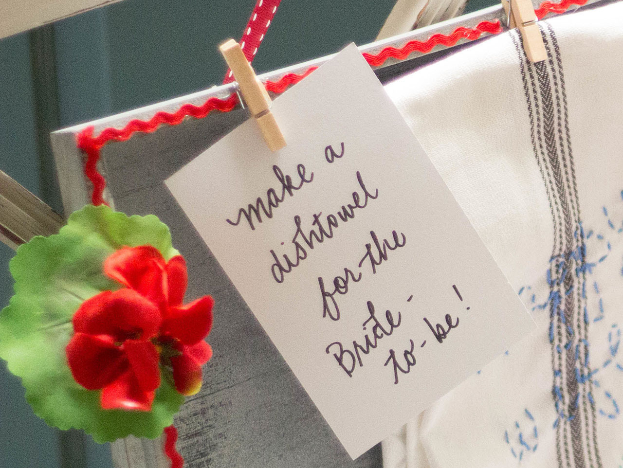 There’s nothing like getting together with friends and crafting up some fun, especially at a bridal shower, where the finished gifts will become a meaningful keepsake for the newlywed couple! Most importantly, remember to have fun, and celebrate everything! Be sure to check out the full Stock the Kitchen Bridal Shower, A Recipe for a Happy Marriage Guest Book, Wood Kitchen Sign DIY and Berry Cobbler.
