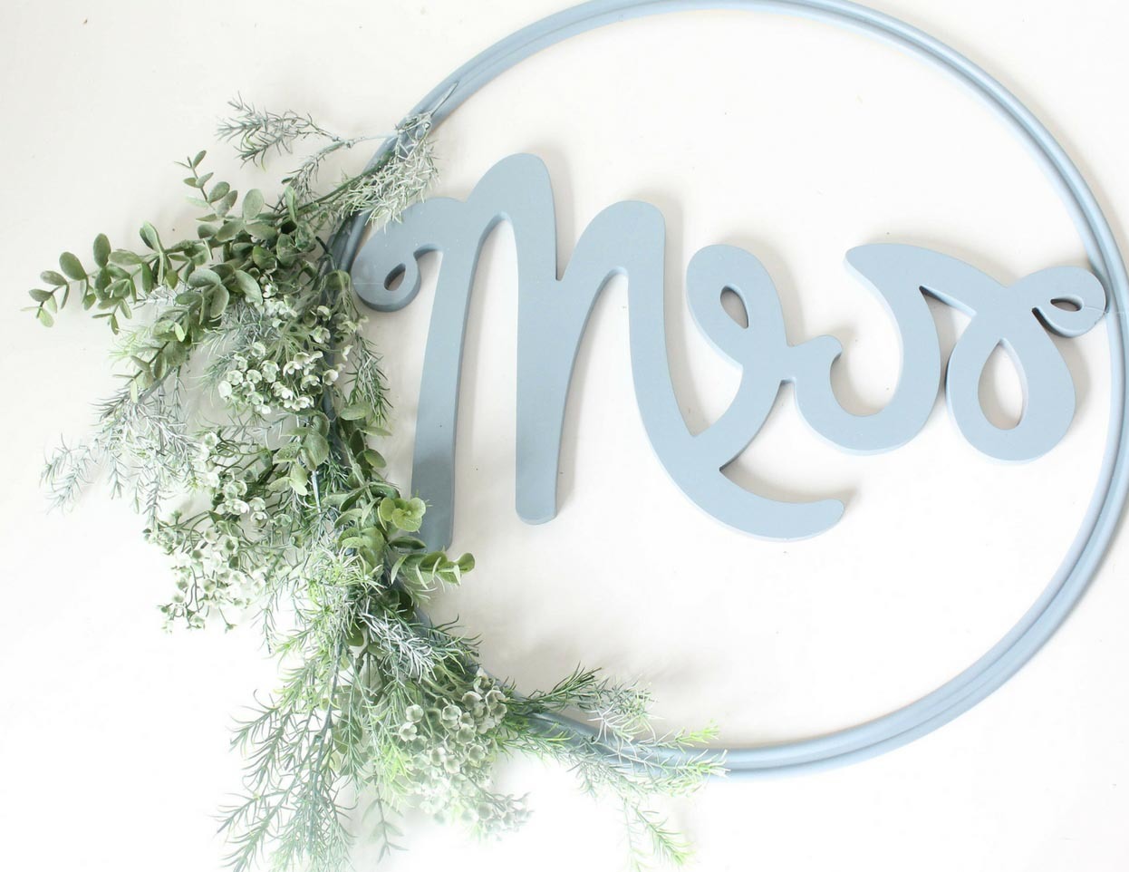 Hot Glue your painted Faux Succulents to the hoop to cover the last of the stems.