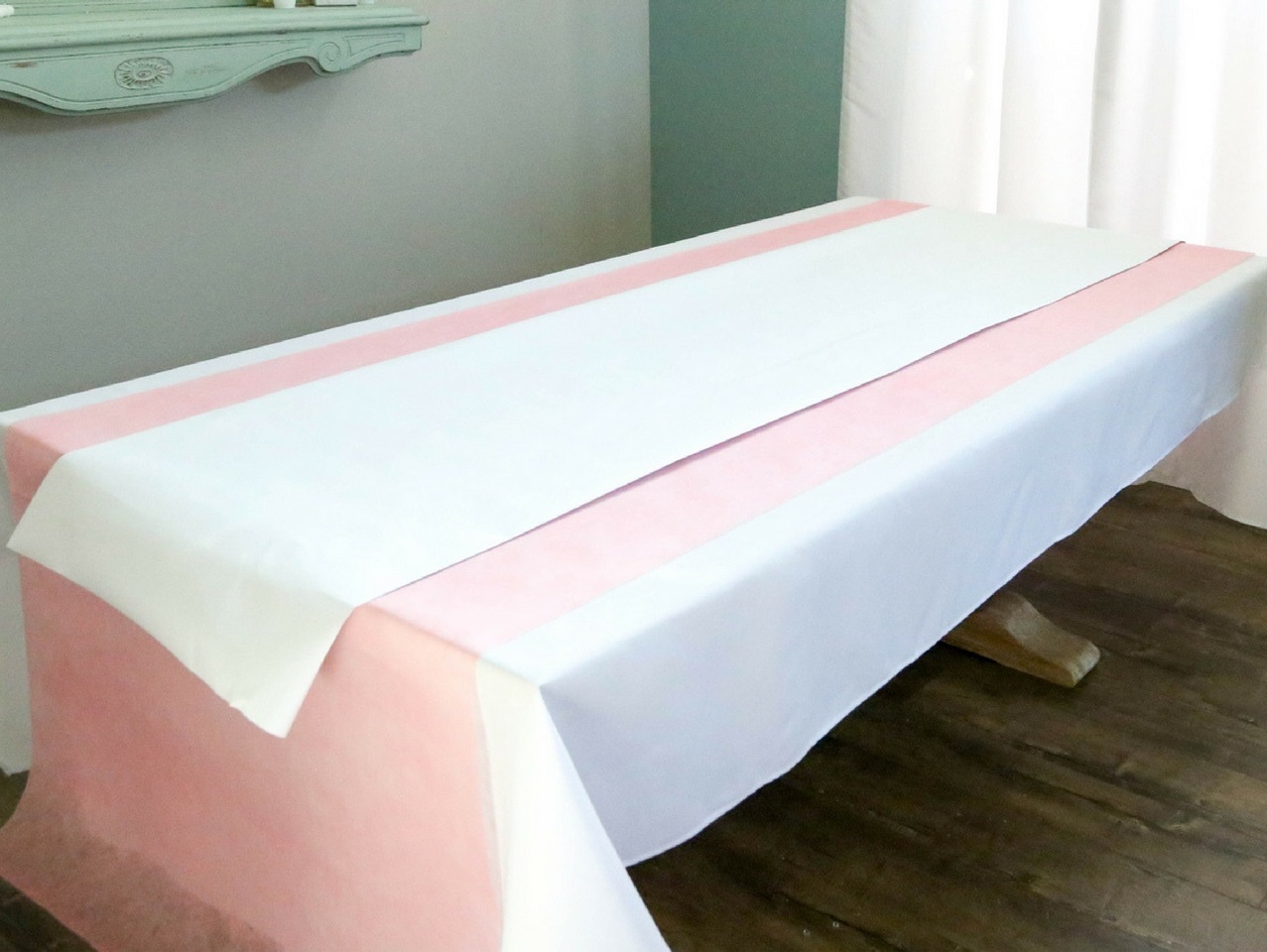 Lay out a length of white fadeless paper down the length of the table you plan to use it on. Double it over to ensure that the surface is completely opaque, as shown. You can also fold to any width to create a wider, or more narrow table runner, depending on your preference. Once you've decided, make nice, sharp creases in the paper to help it lay flat.