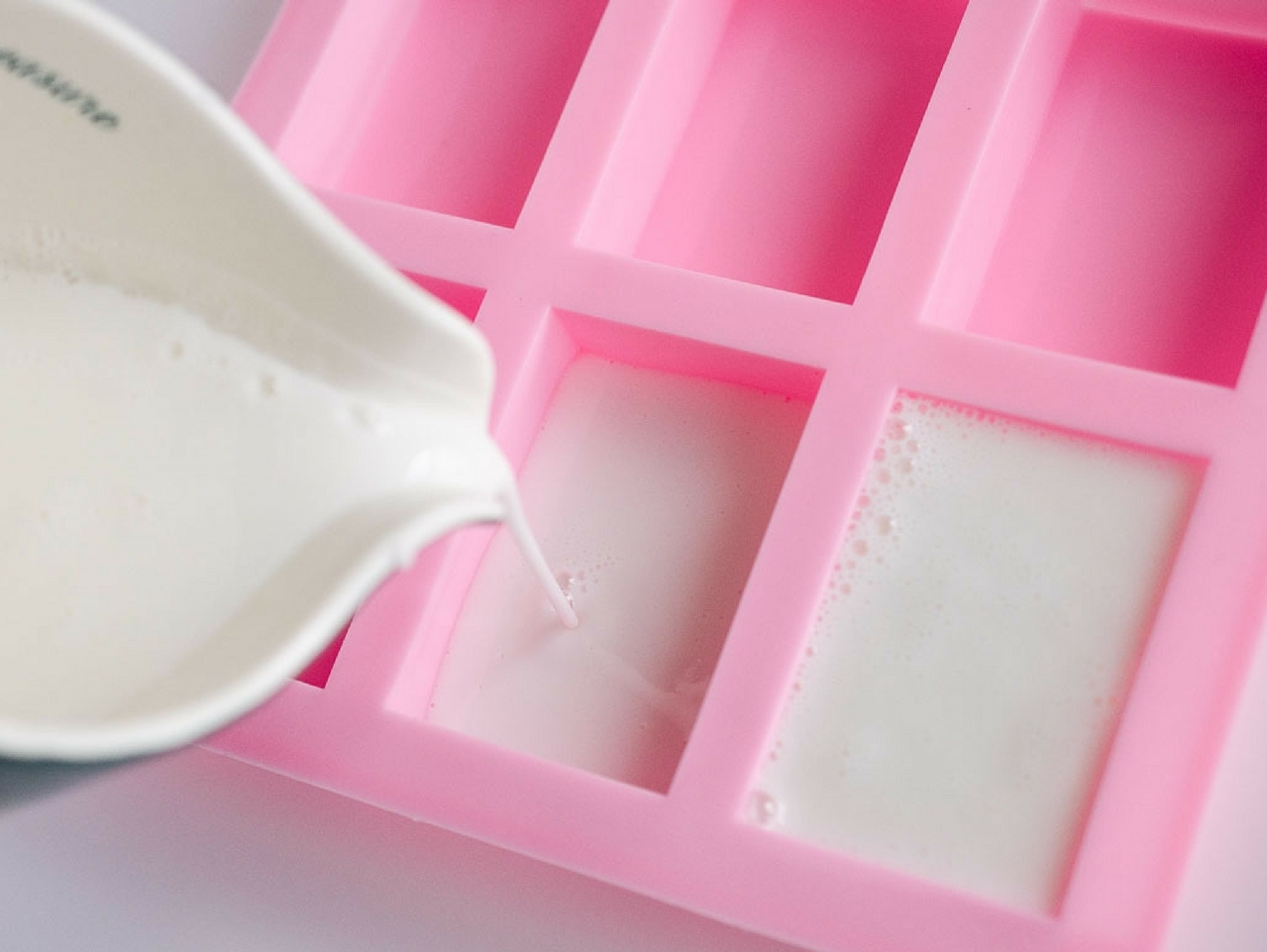 Pour the mixture into the soap molds. Give the molds a quick, sharp tap against the counter to release any tiny bubble build up.