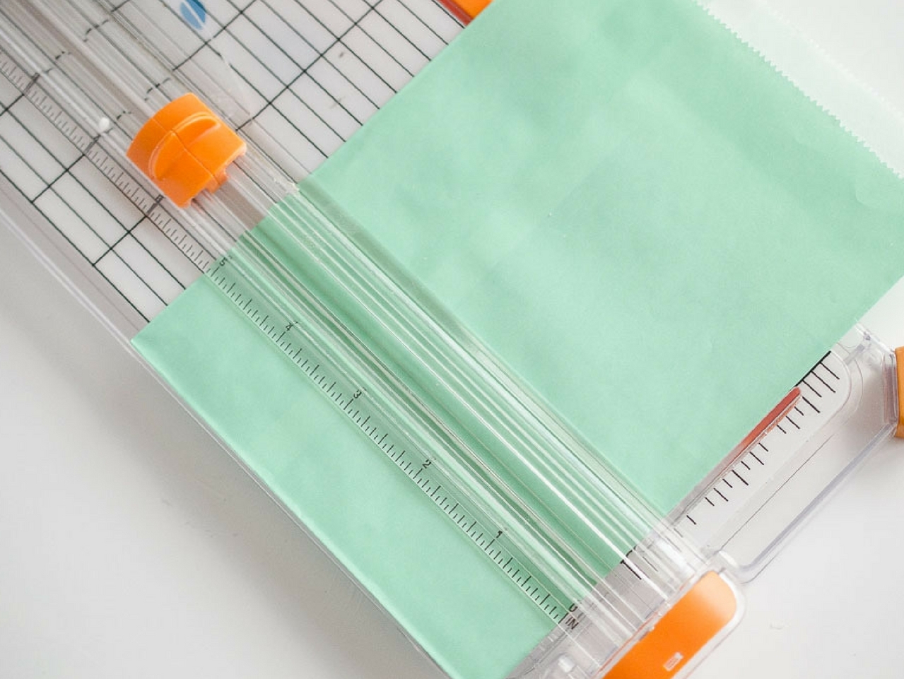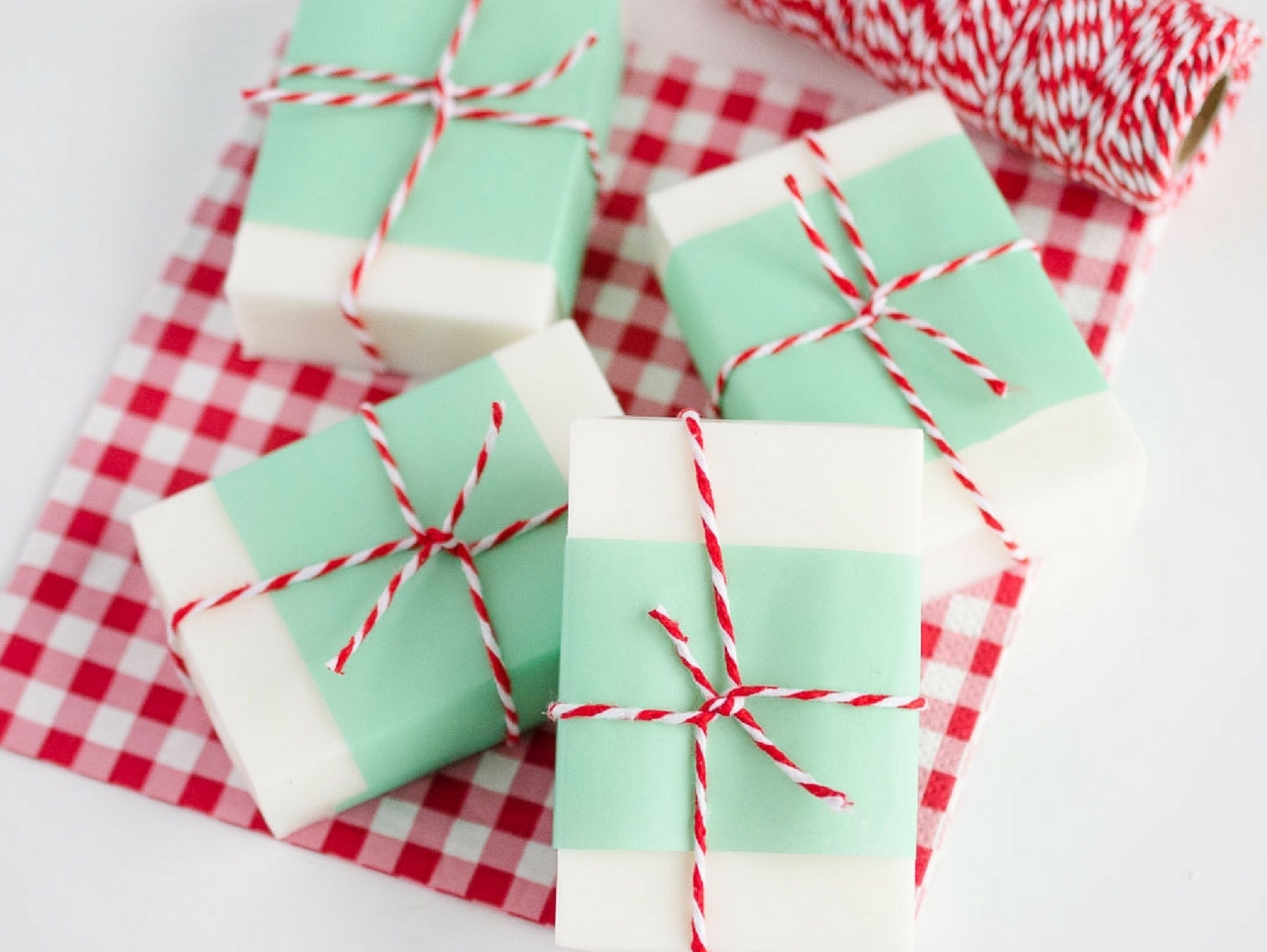 These mint parchment treat bags make perfect wraps for the soap bars. Simply cut the top and bottom off the bag until you have a long rectangle.