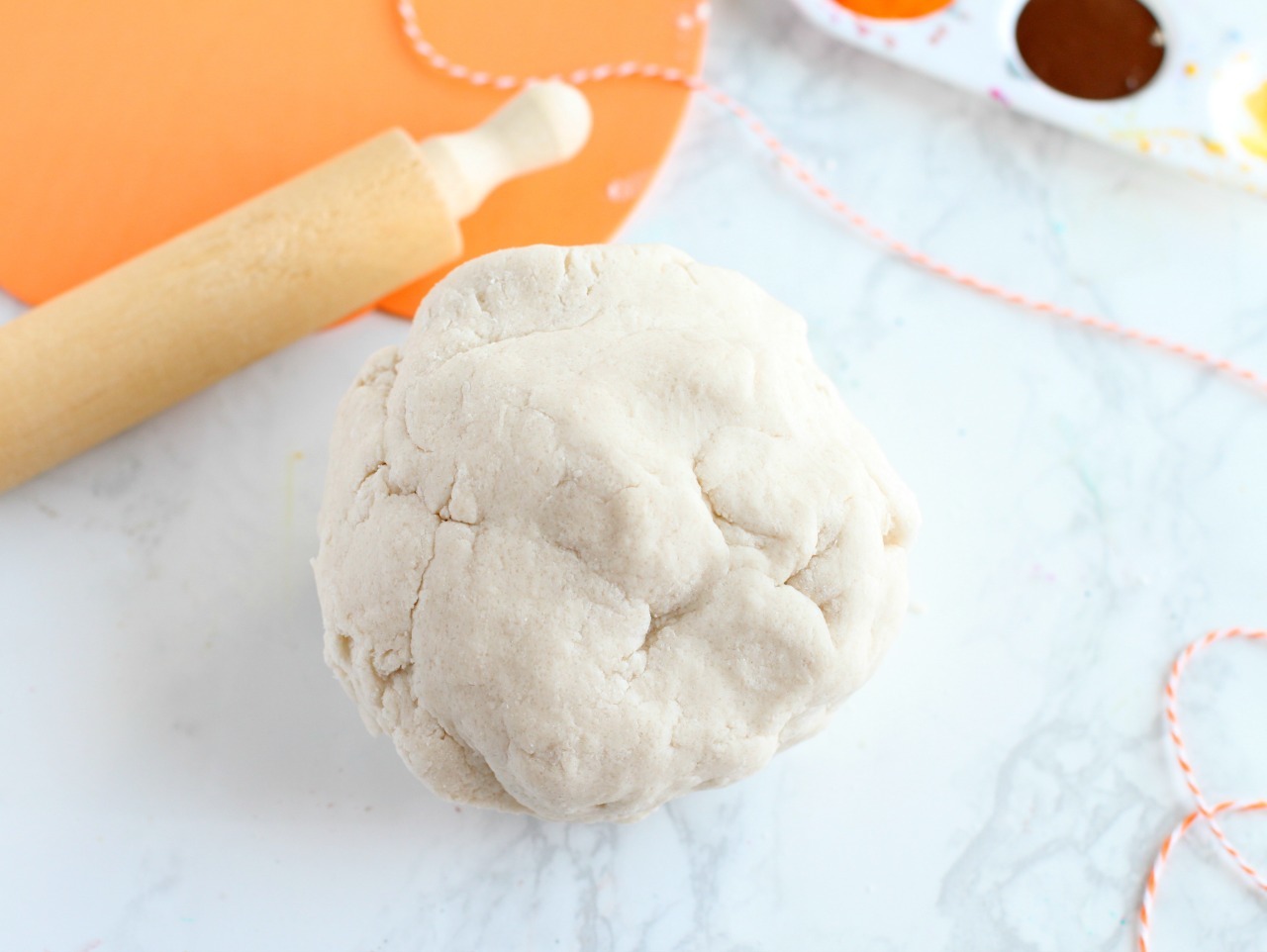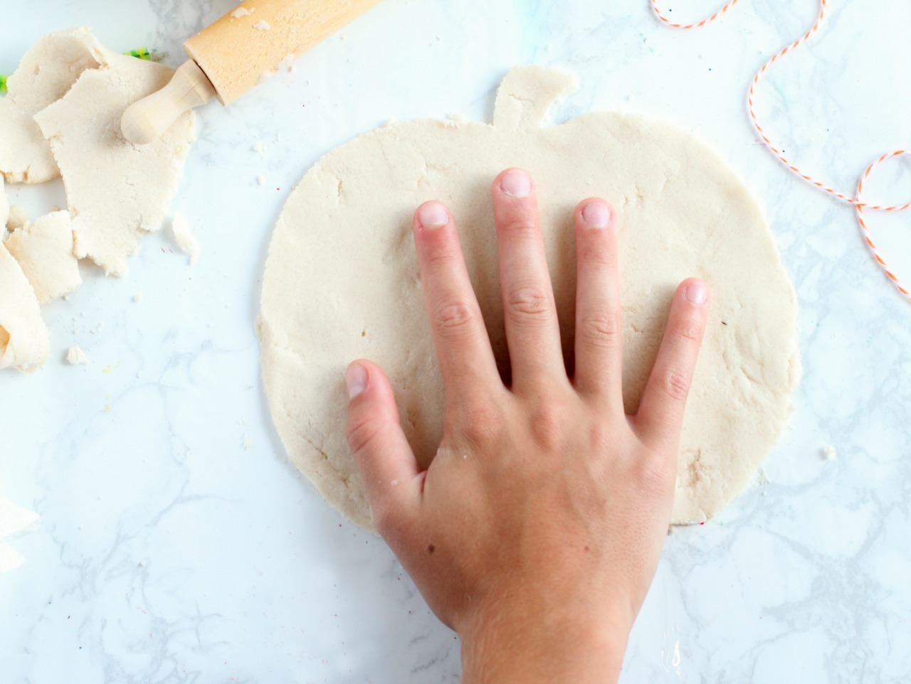 Firmly press your child's hand into the salt dough until it leaves an impression. Set in a dry area and allow to air dry for 48-72 hours.