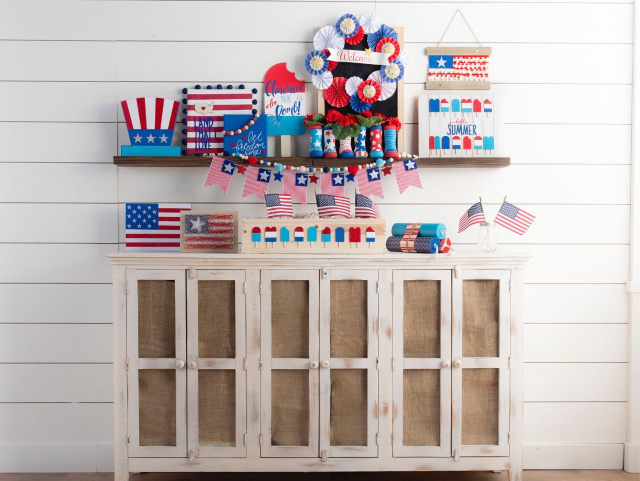 Display your sign in your home with other patriotic décor to create a fun wall display for the summer. Be sure to also check out all of the Patriotic Decorating Ideas here including the Let Freedom Ring DIY Sign, DIY Patriotic Popsicle Sign and the Land that I Love DIY Sign.