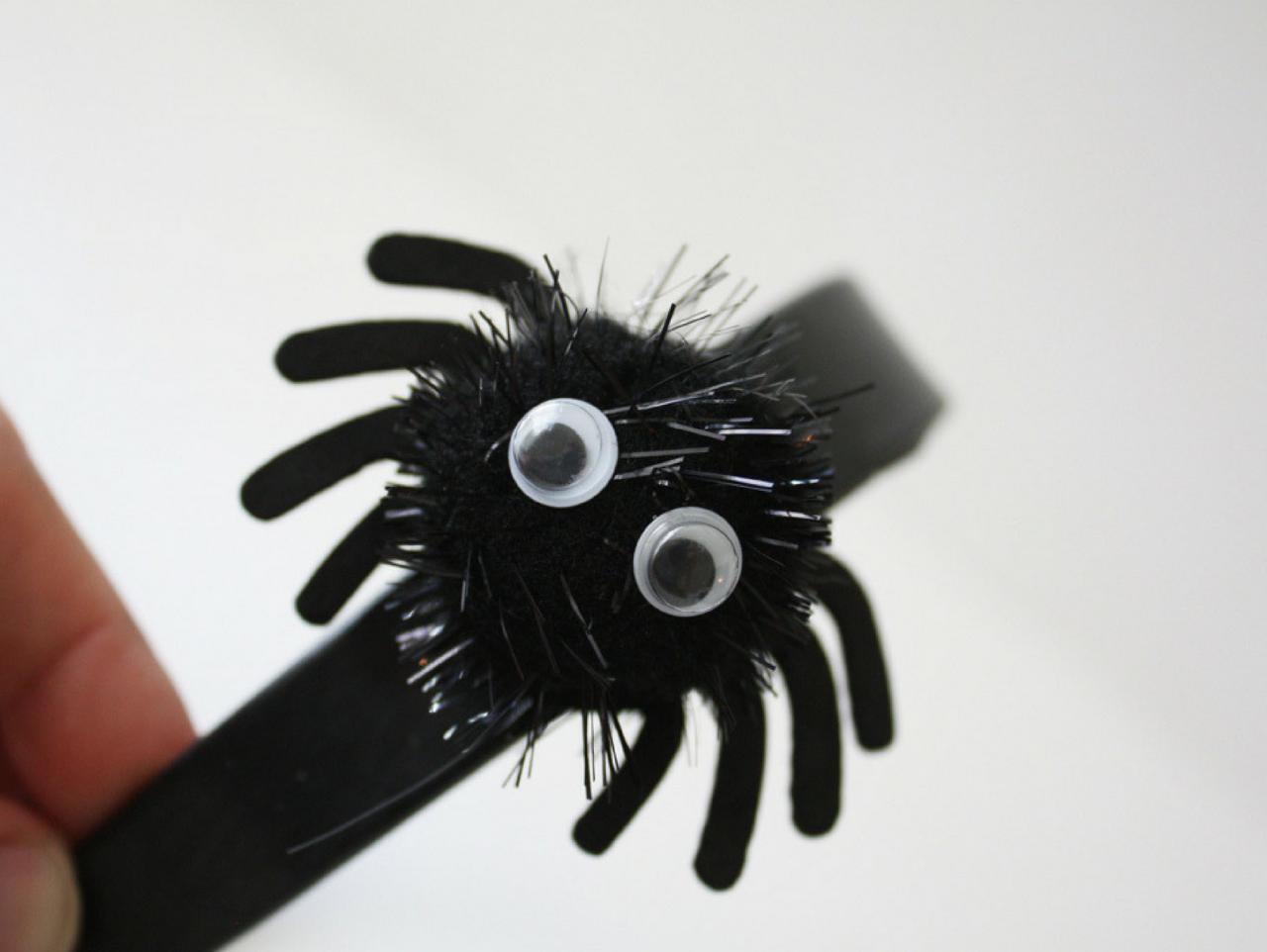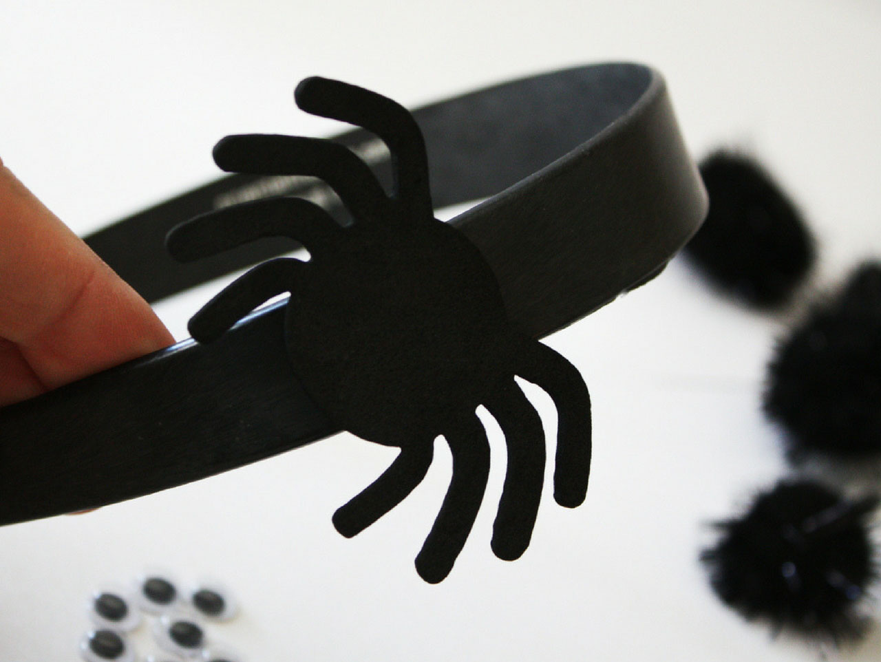Take all your headband supplies out of the packaging. Start by positioning your spider legs on the headband and stick into place.