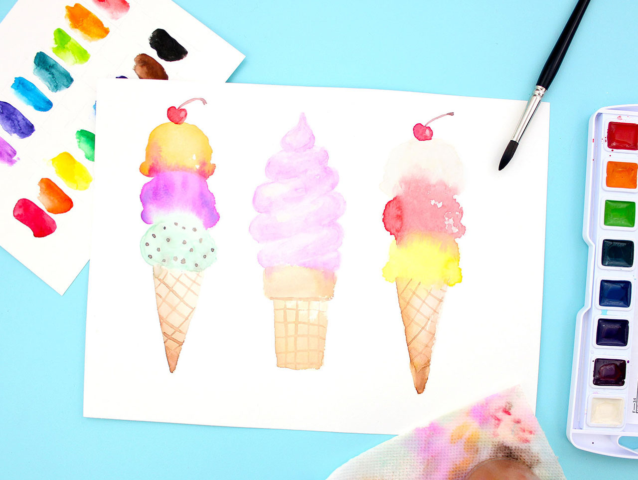 And that’s it – you’re done! You can always go back in and add some more details and layers of texture, but I think these watercolor ice cream cones are especially beautiful because they’re loose and abstract.