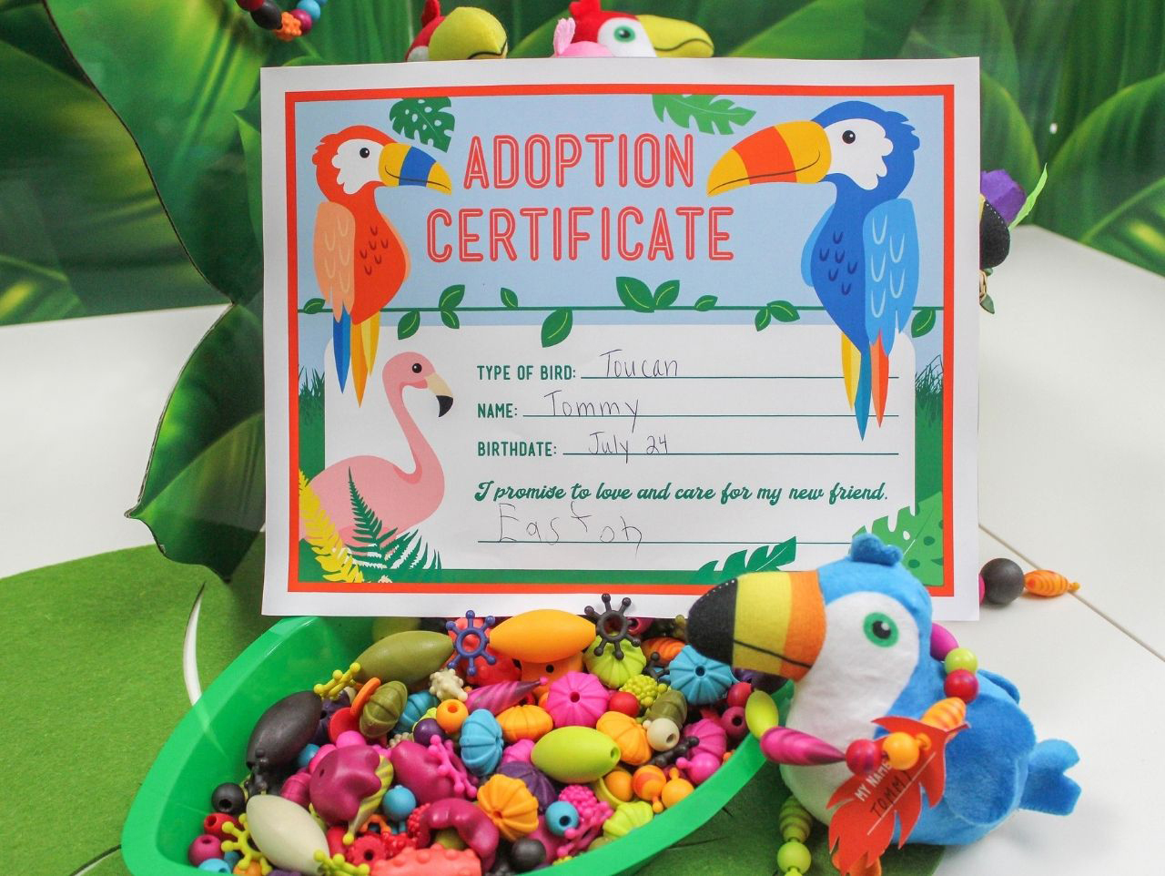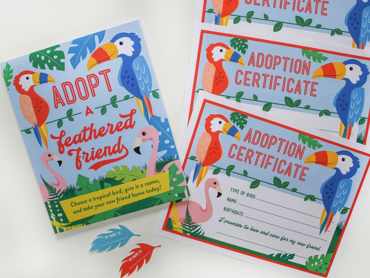 Be sure to have each party guest fill out an adoption certificate for their new bird friend!