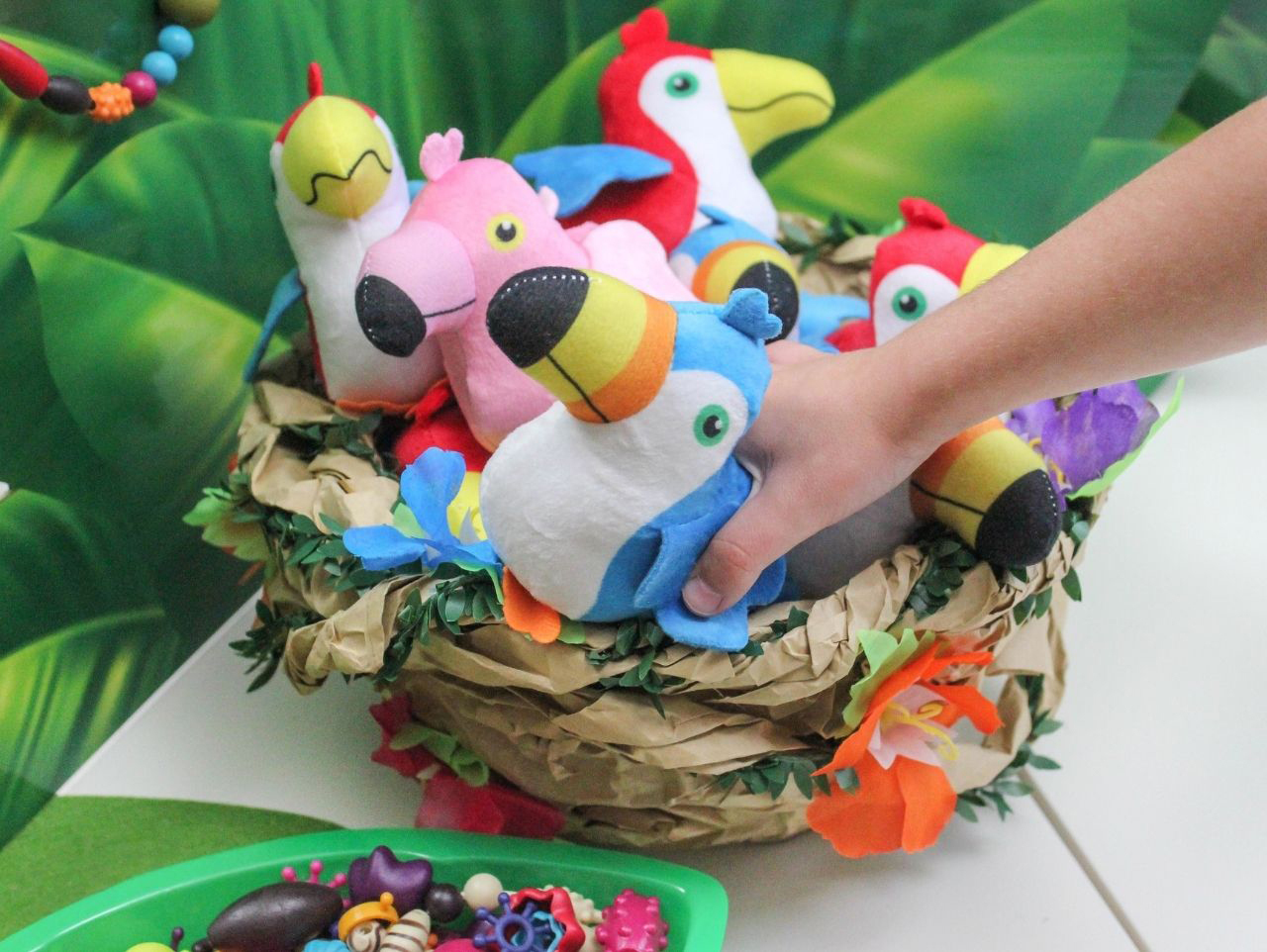 During the party, instruct each party guest to select a Tropical Stuffed Bird and give it a name.