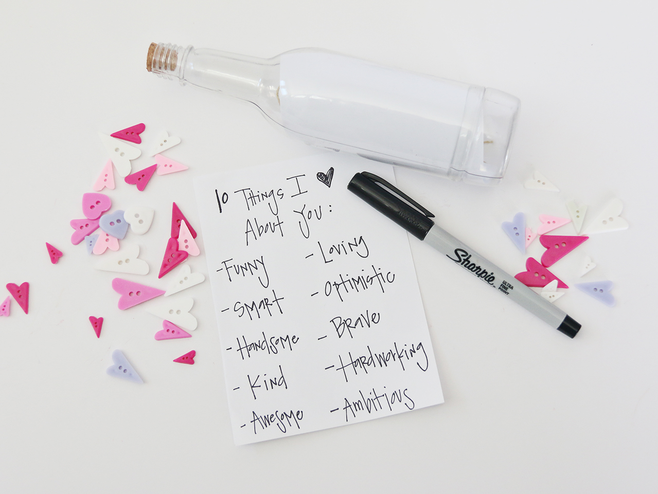 Begin by writing a love note to your Valentine. This could be a list of things you love about your Valentine, or a simple note telling them how you feel.