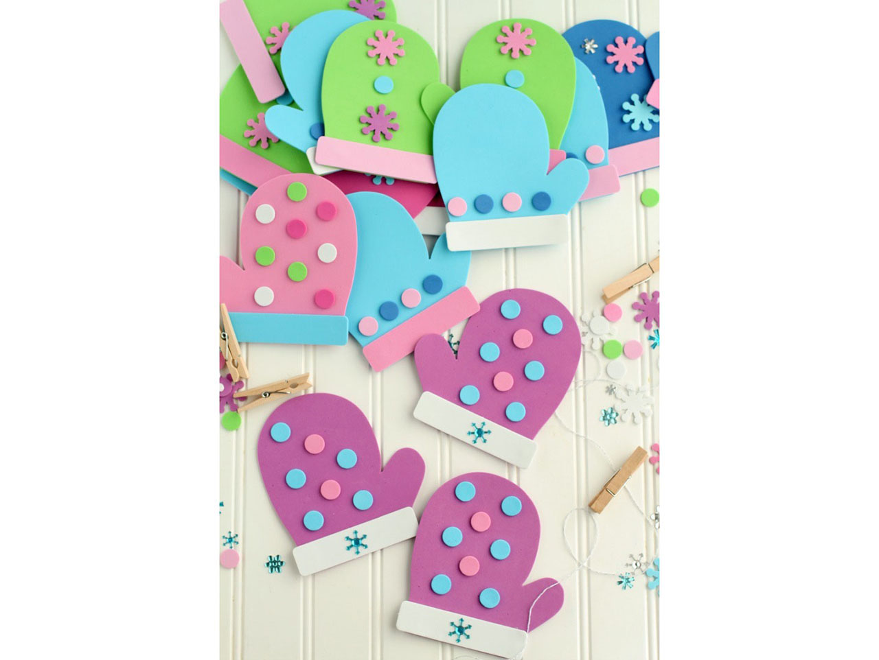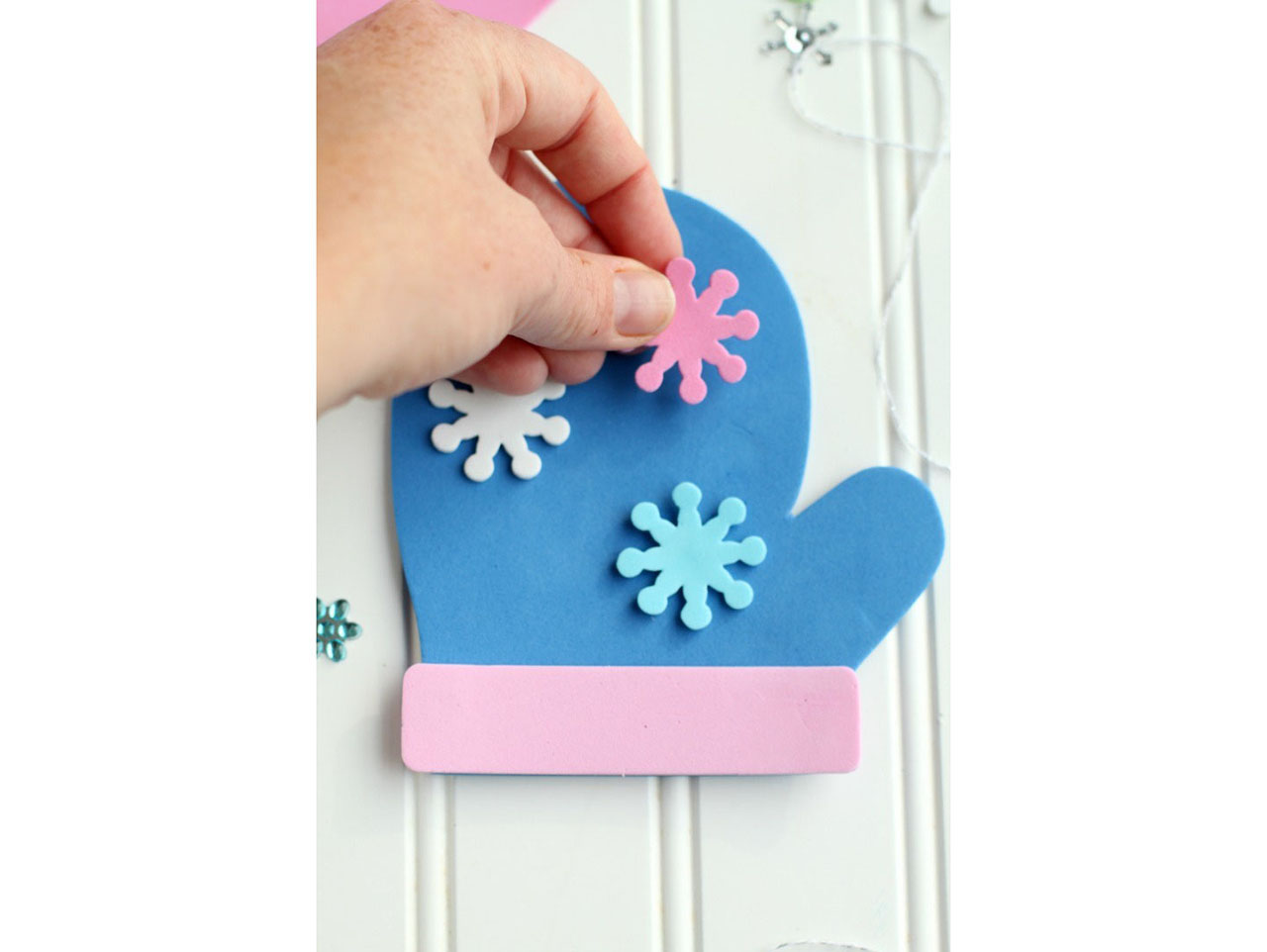 Continue decorating the mittens until you have decorated all of them.