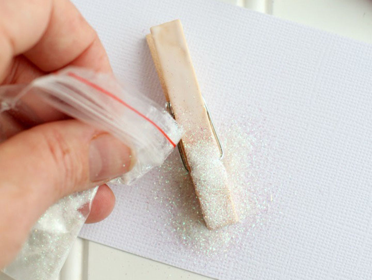 Sprinkle the white glitter on top of the glue, set aside to dry.