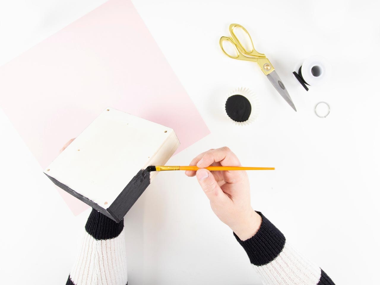 Using acrylic paint and a flat bristled paintbrush, paint the edges of the wood box frame.