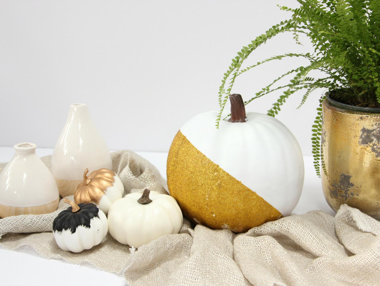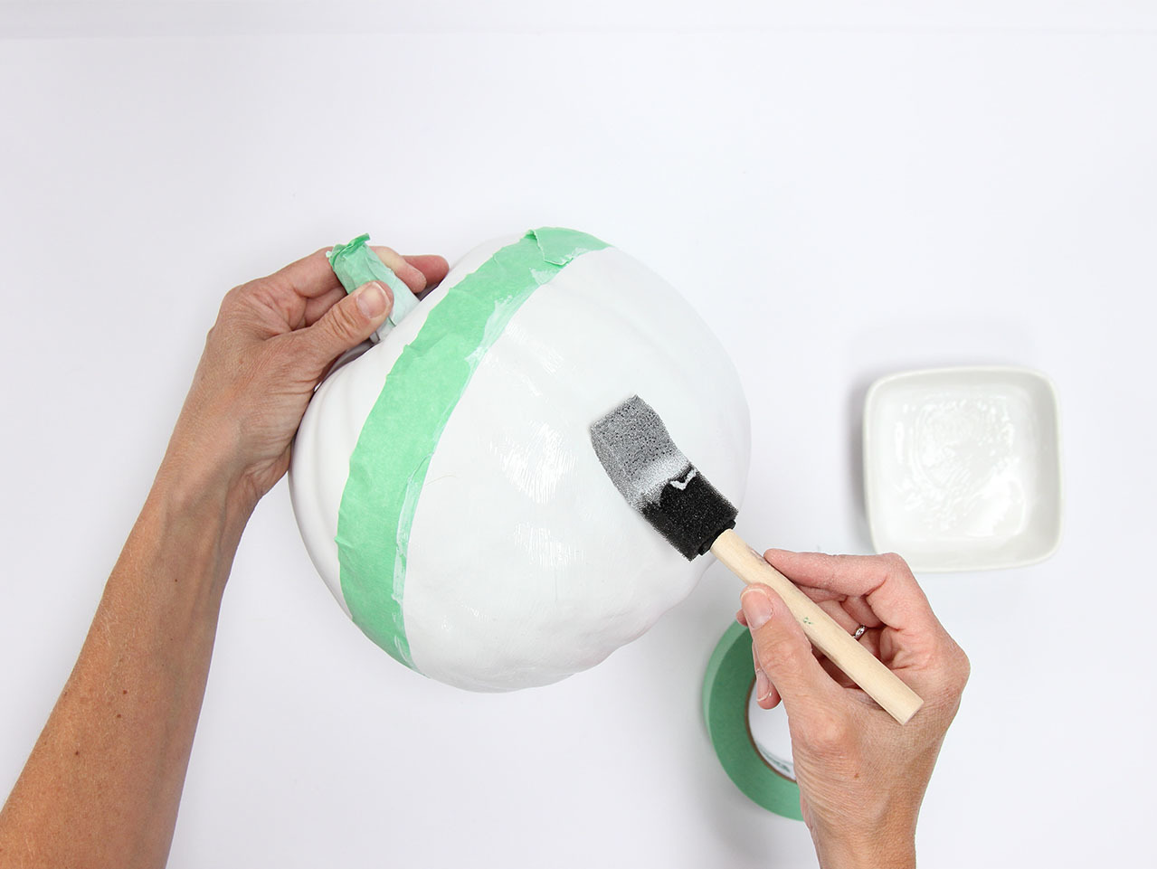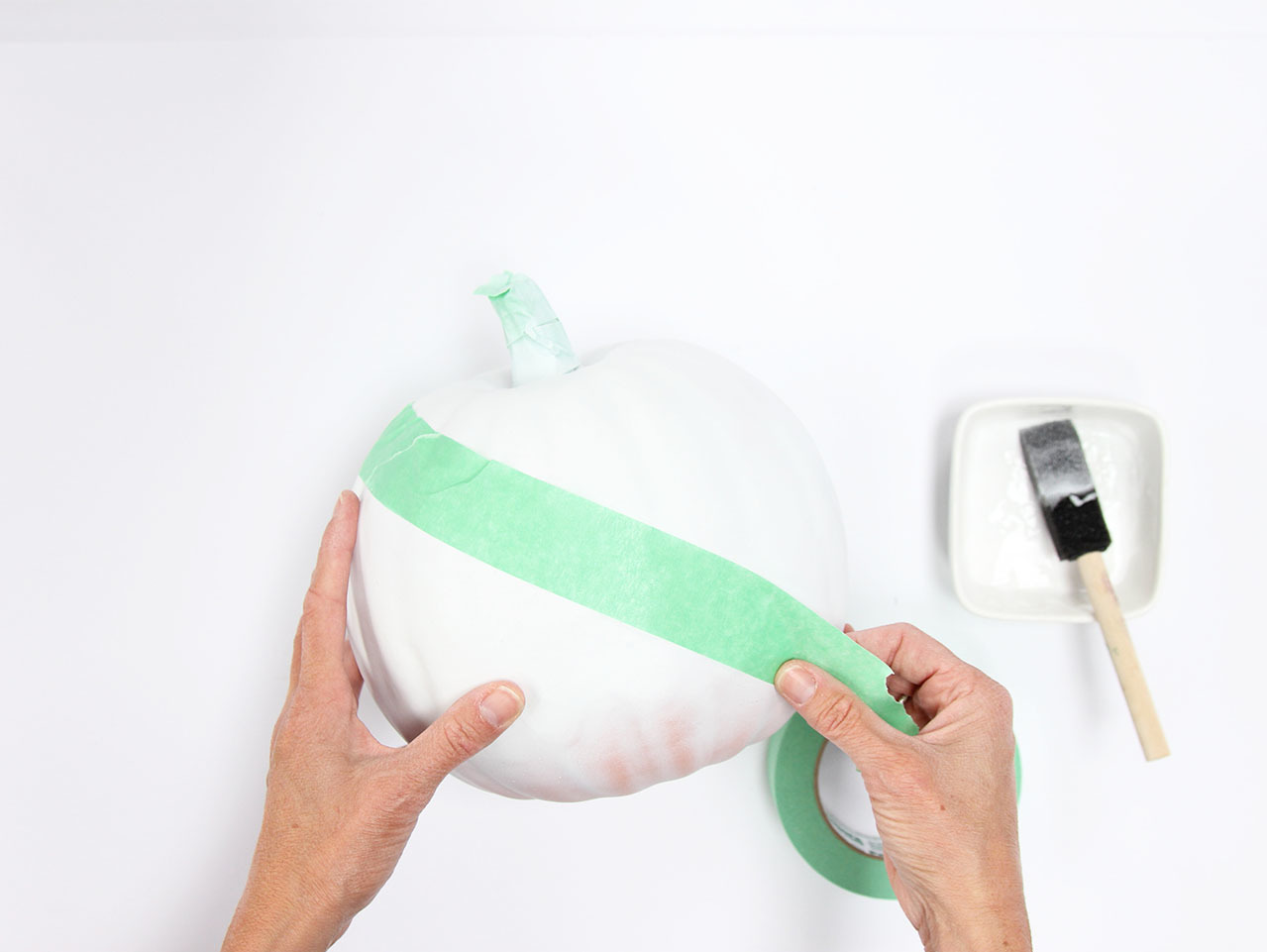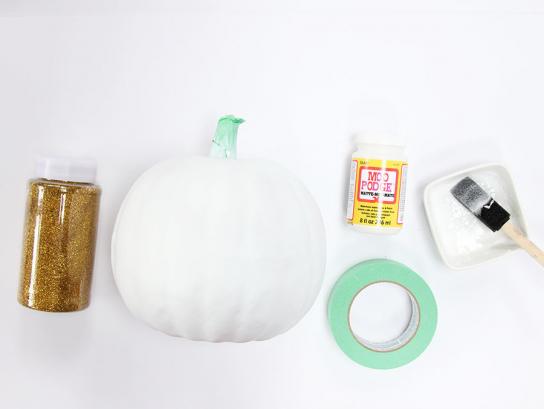 Tape off a section of your pumpkin that you want to add glitter to. Use painter's tape or washi tape. I spray painted the faux pumpkin white the night before crafting.