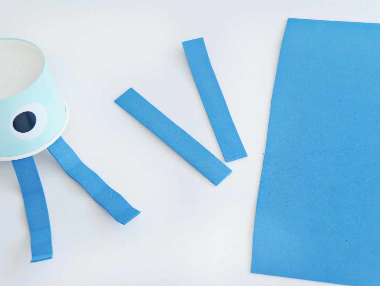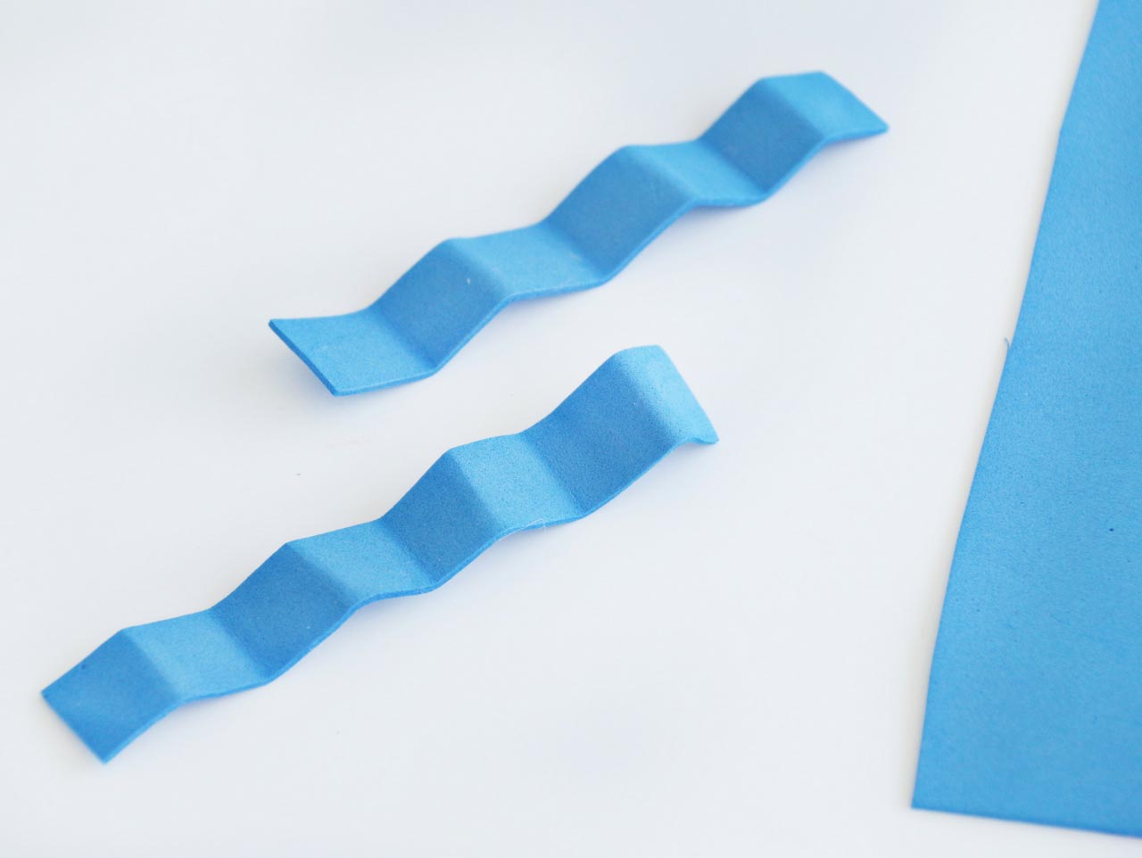 Cut 8 strips from the foam sheets about 3/4in. wide and 6in. long.