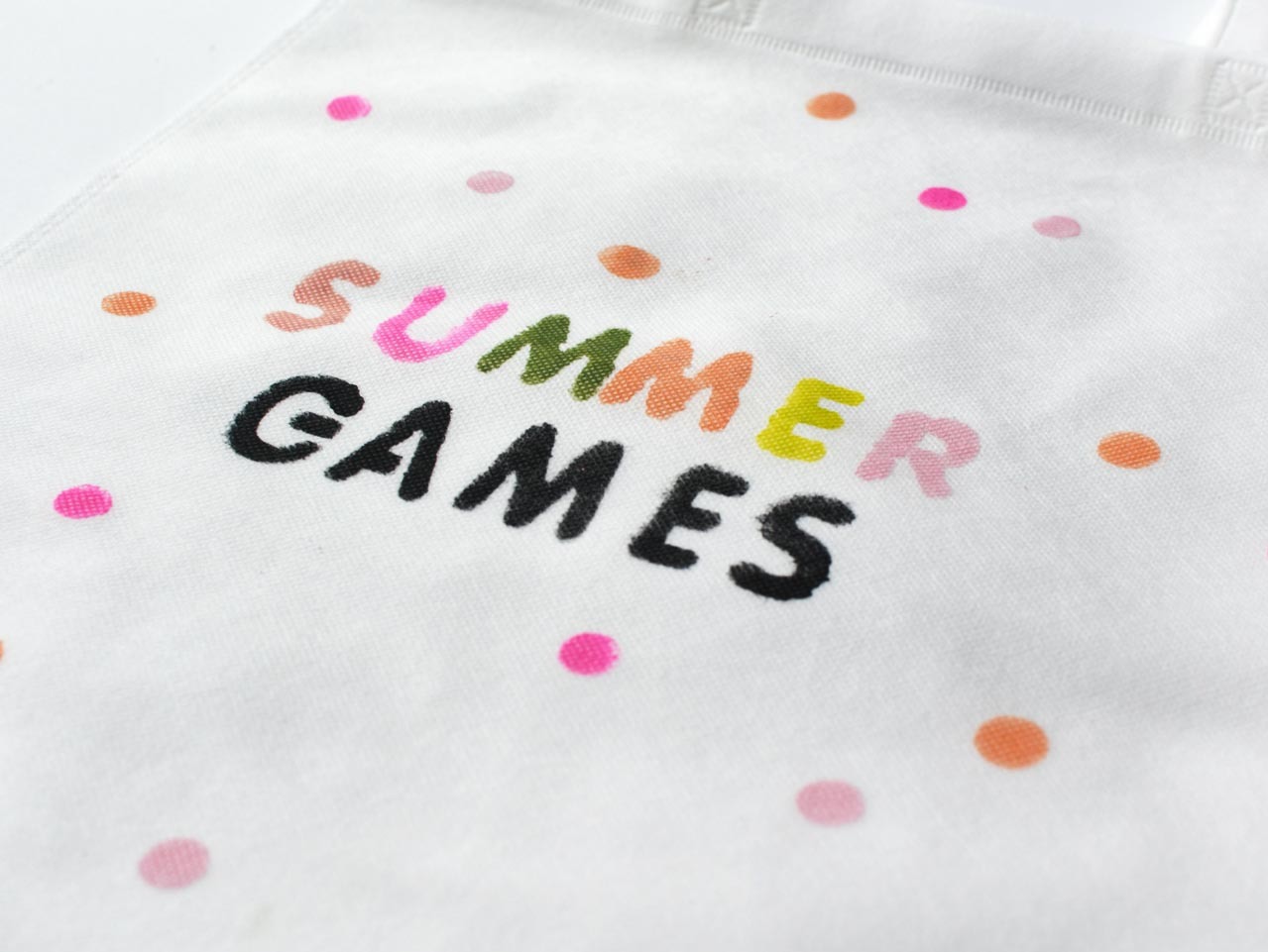 Once the letters are stenciled onto the tote bag, I added a few polka dots for a little more color! You can use the eraser of a pencil for this step.
