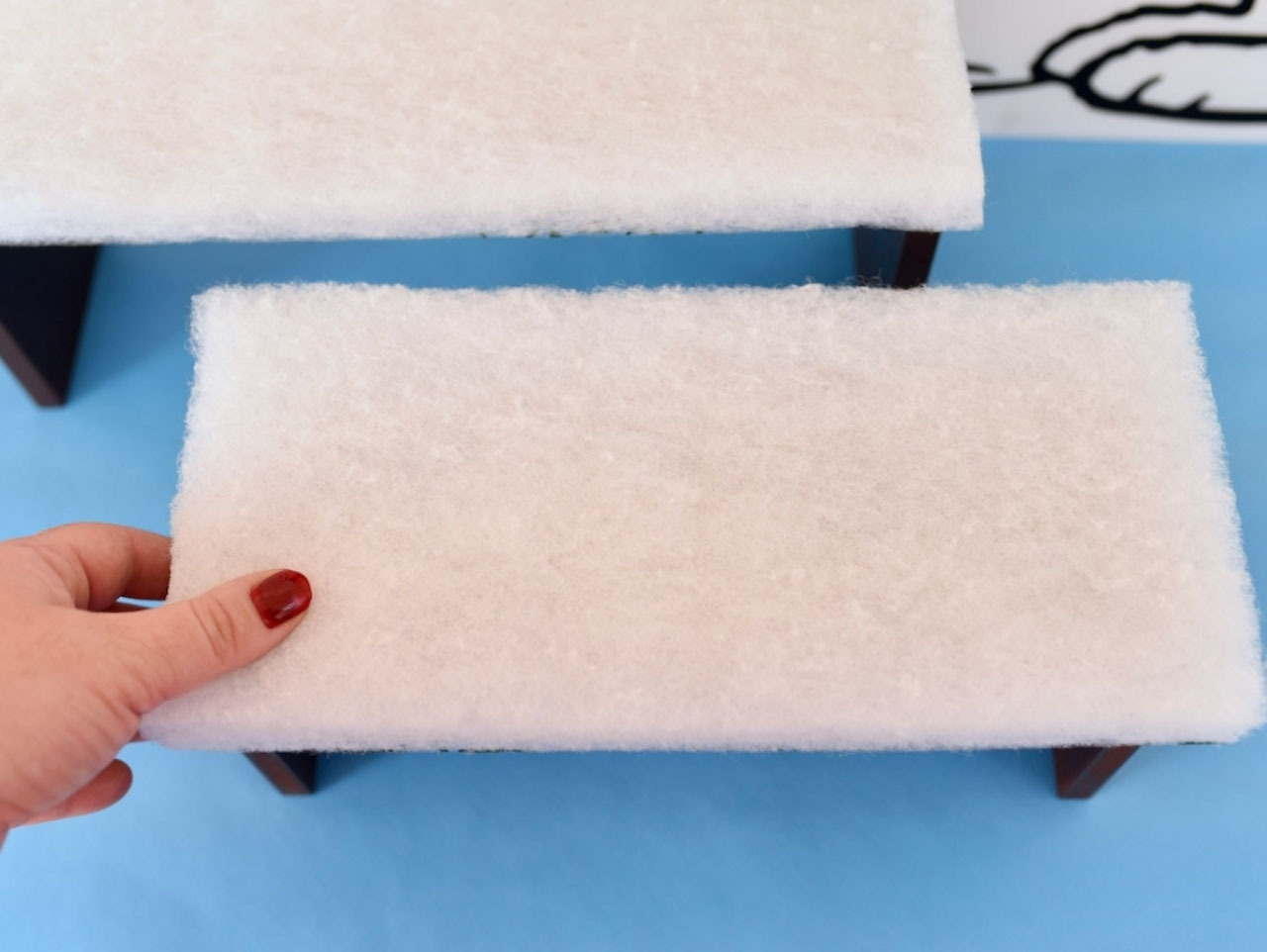 Cut white batting the same size as the tops of the risers, then place the batting on top of each riser to look like a blanket of snow.