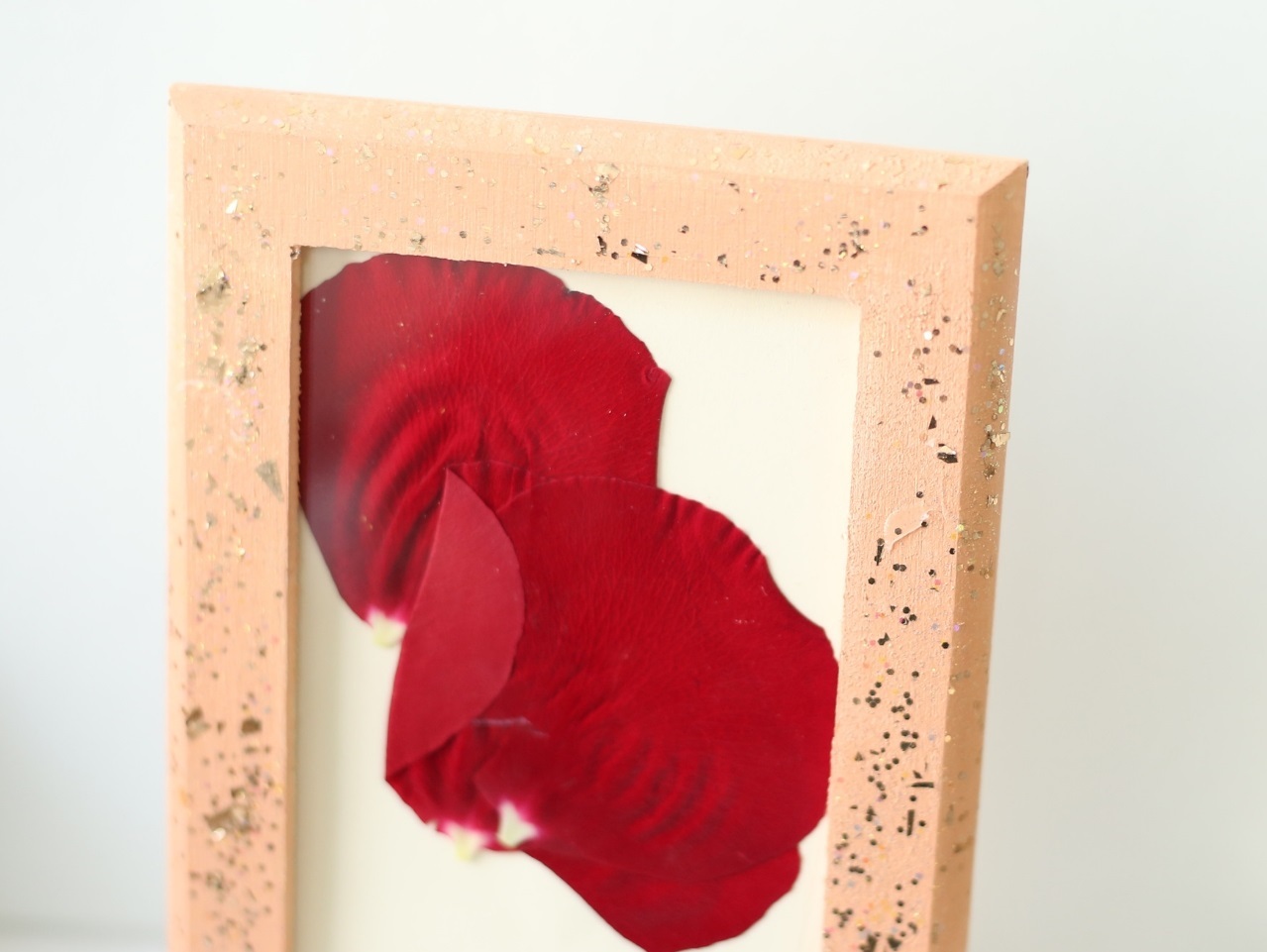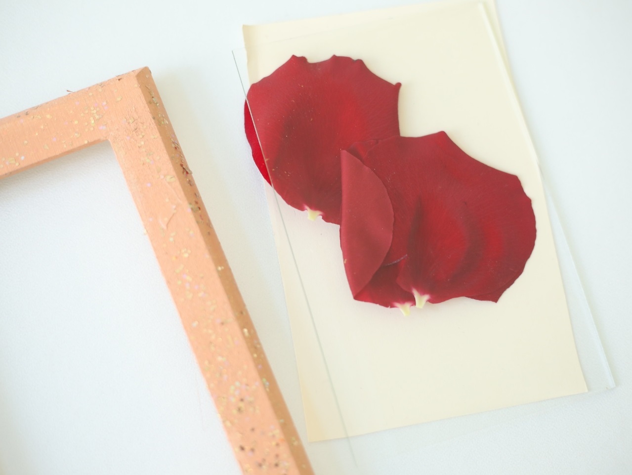 Press rose petals or even faux red rose petals between the glass and a bit of ivory cardstock.